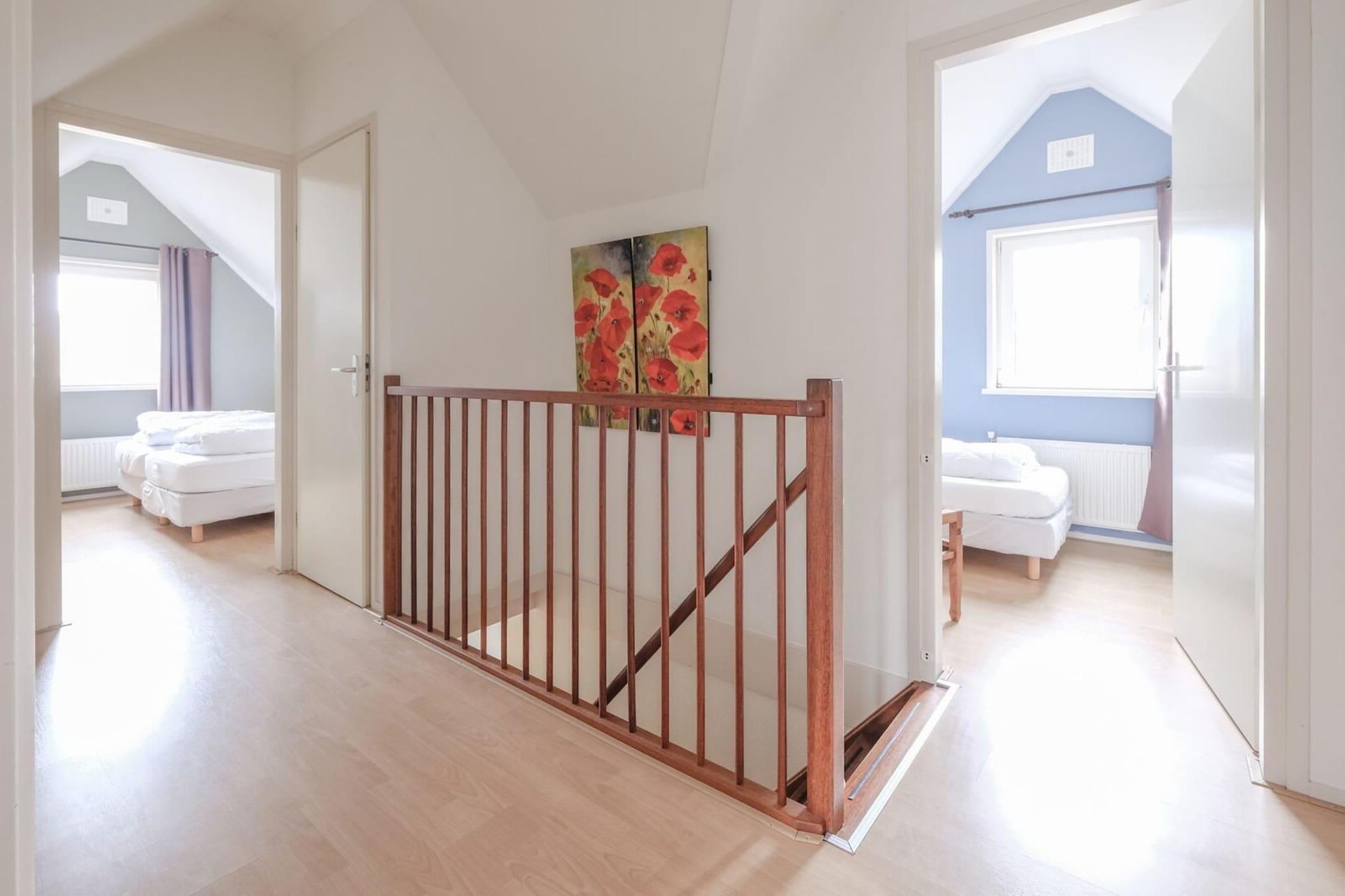 Slap helt af på den smukke, lille skala Villapark Anzelhoef i Sint Maartenszee. På kun 10 cykelminutter er du på stranden, og skoven er kun få minutters gang væk. Denne beliggenhed er en ideel base for en cykel- eller vandreferie nær havet eller for en forfriskende weekendophold. Den rummelige og smagfuldt indrettede stue har to komfortable sofaer og kabel-tv med hollandske og tyske kanaler. Spisestuen har et stort bord med seks stole, og en høj stol er tilgængelig for de små. Det åbne køkken er fuldt udstyret, herunder en opvaskemaskine, filterkaffemaskine, elkedel, 4-brænder gaskomfur og en kombineret mikroovn. For nemheds skyld står en vaskemaskine og tørretumbler til din rådighed i bryggerset._x000D_ _x000D_ Ovenpå finder du tre komfortable soveværelser, alle med rigelig garderobeplads. Alle senge har enkeltmadrasser og dyner. En børneseng er også tilgængelig; husk at medbringe eget sengetøj til tremmesengen. Badeværelset i stueetagen er udstyret med bruser, toilet og håndvask, med et andet toilet placeret på første sal for ekstra bekvemmelighed. Træd gennem havedøren i stuen for at få adgang til den solrige have, der byder på en smukt anlagt terrasse med havemøbler. Det er tilladt at grille på el eller gas._x000D_ _x000D_ Parkeringsplads er tilgængelig for én bil ved overnatningsstedet, og yderligere biler kan parkere på den almindelige parkeringsplads. Bemærk venligst, at opladning af elbiler ved hjælp af bungalowens elforsyning ikke er tilladt. Nyd gratis WiFi under hele dit ophold. Kæledyr er ikke tilladt i denne bolig._x000D_