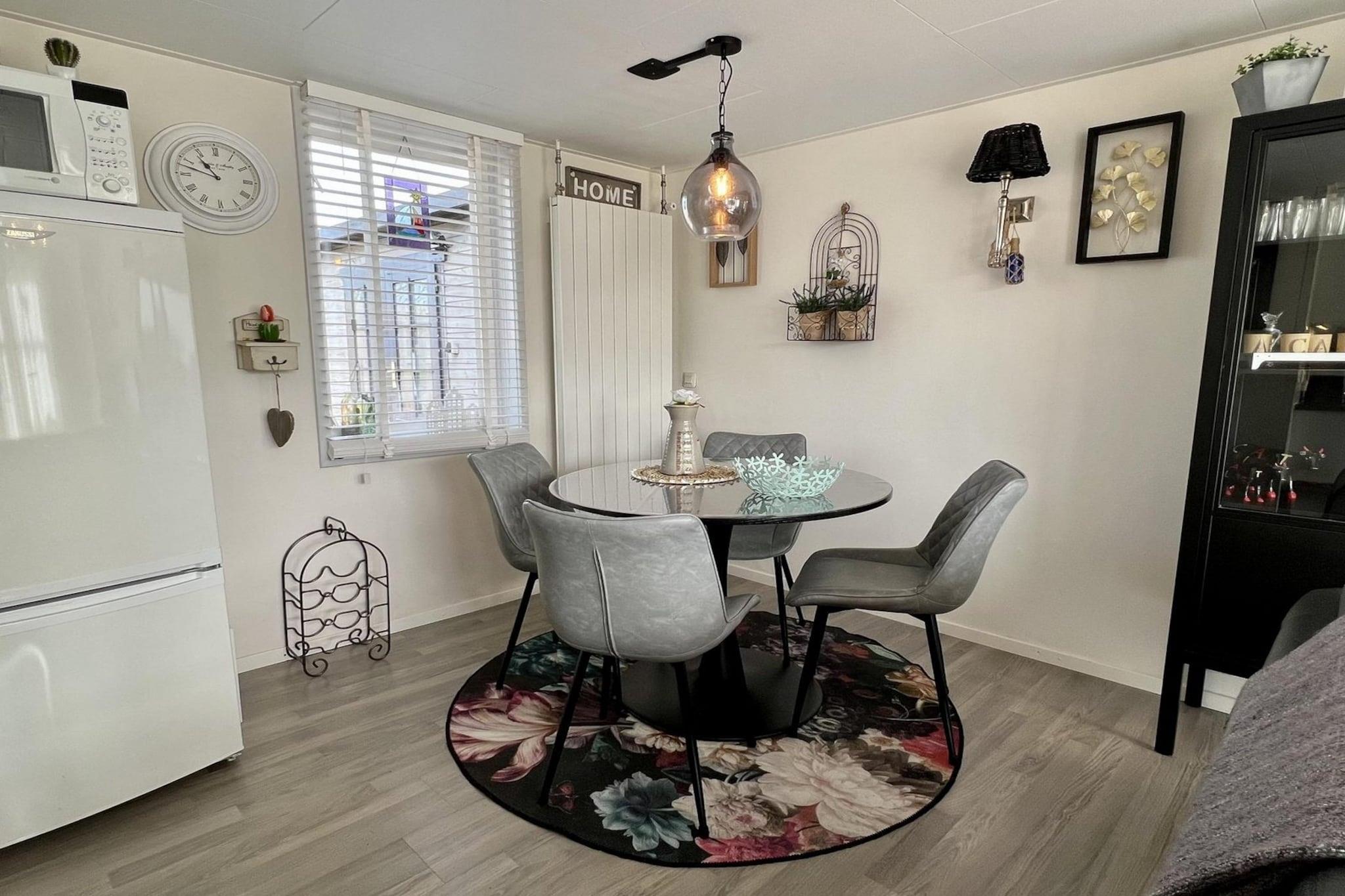 Flygt til denne charmerende og komfortable bungalow, et perfekt gemmested beliggende på den rolige, træbeklædte grund i en feriepark. Dette hjem er designet til en afslappende ferie med familie eller venner og tilbyder en vidunderlig blanding af hyggeligt interiør og et smukt åbent udendørsområde, alt sammen kun syv minutters cykeltur fra den dejlige strand Sint Maartenszee. Træd indenfor i denne meget smagfuldt indrettede bungalow og find en lys og indbydende opholds- og spisestue. Et gaskomfur sørger for en hyggelig varme, mens et tv med kabeltilslutning er klar til en aften med afslapning. Det moderne, åbne køkken er fuldt udstyret med gaskomfur, kaffemaskine, køleskab med fryser og opvaskemaskine, hvilket gør madlavning ubesværet. Hjemmet er også udstyret med centralvarme og gratis Wi-Fi for din komfort. Bungalowen har komfortabel plads til op til fire gæster med sine to soveværelser. Soveværelset har en dobbeltseng og to garderobeskabe, mens det andet soveværelse har to enkeltsenge og et lille garderobeskab. Badeværelset har bruser, håndvask og toilet. Udenfor er den hyggelige terrasse et fantastisk sted at slappe af. Der er et havebord og fire stole, og en udtrækkelig afskærmning giver et behageligt udendørsområde selv på køligere dage. Haven er ikke indhegnet, hvilket giver uhindret udsigt til den store legeplads og legepladsudstyret, hvilket gør det til et perfekt sted at se børnene lege. Bemærk: Sengelinned er valgfrit og kan medbringes for EURO 13 pr. person/ophold.