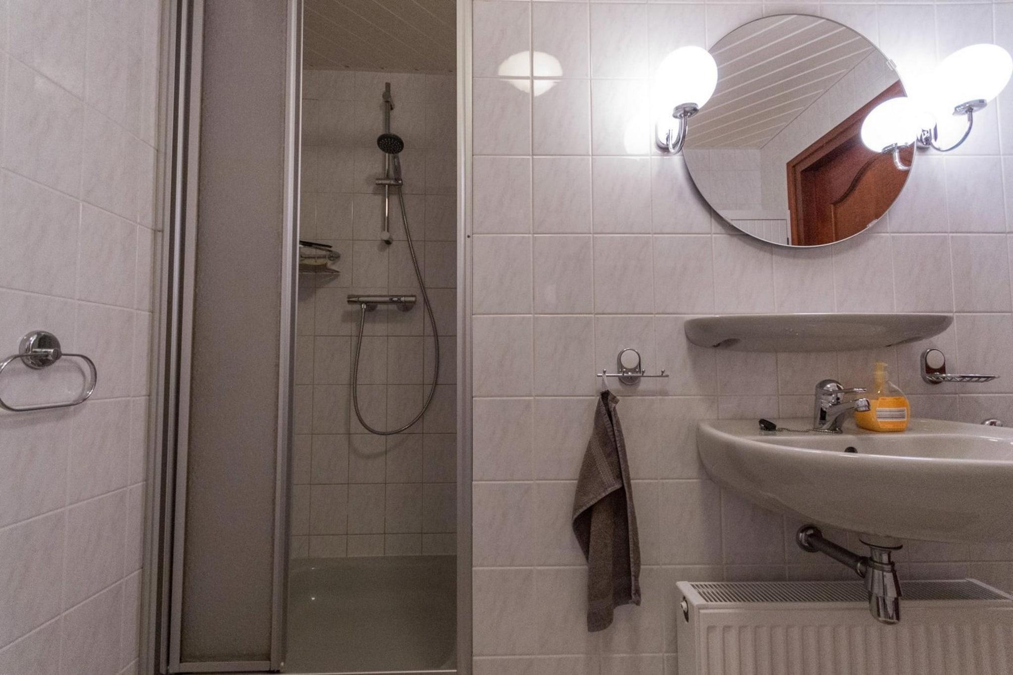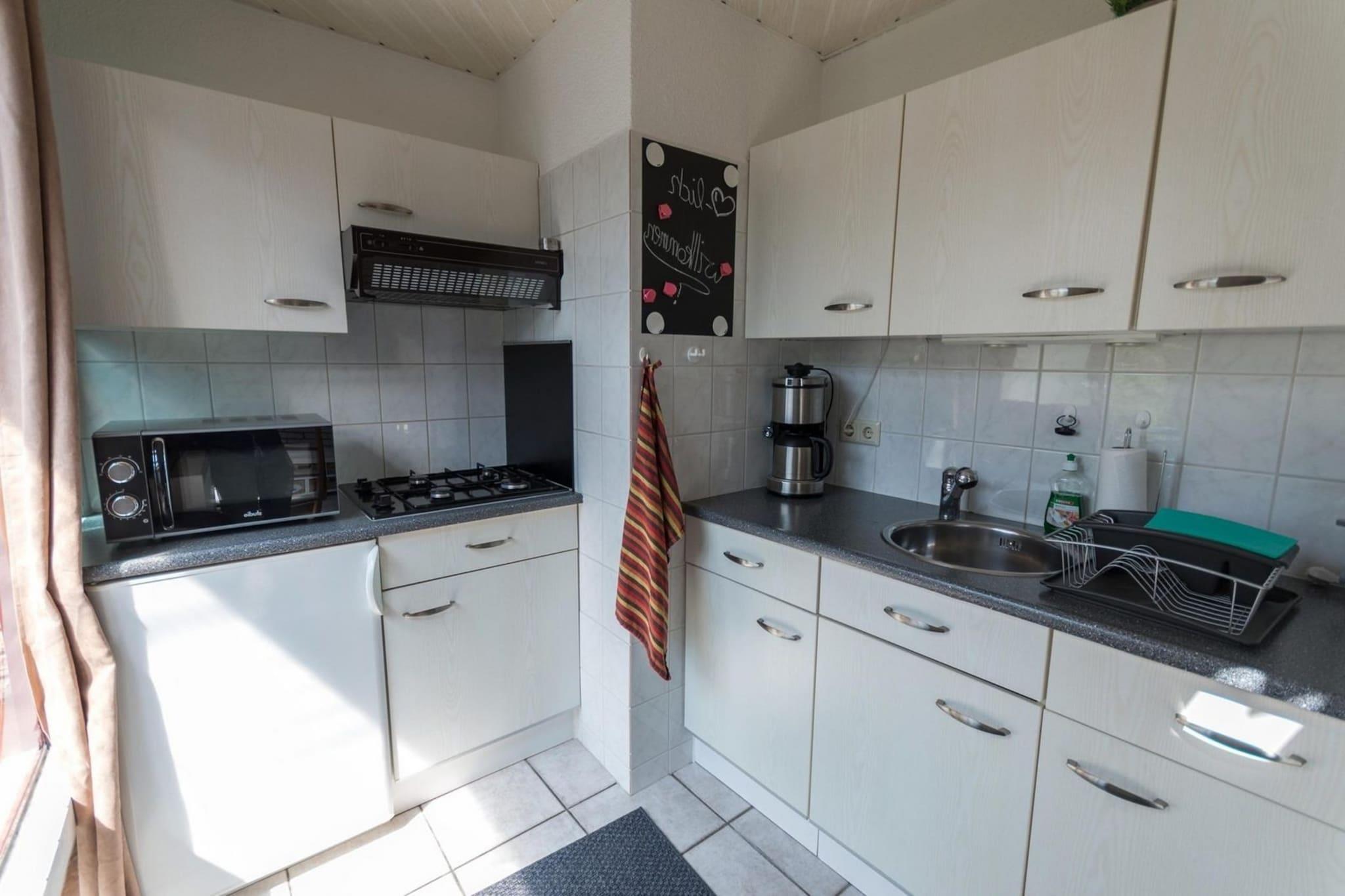 Stueetage: (Stue(Fjernsyn(Smart-TV, Tyske TV-kanaler), spisebord, sofahjørne), åbent køkken(kakkelovn(gas), kogeplade(gas), elkedel, brødrister, kaffemaskine(kaffetragt), ovn, opvaskemaskine , køle-fryseskab), soveværelse(dobbeltseng), badeværelse(bruser, håndvask, toilet)) På 1. etage: (soveværelse(enkeltseng)) tremmeseng, terrasse, have, barnestol