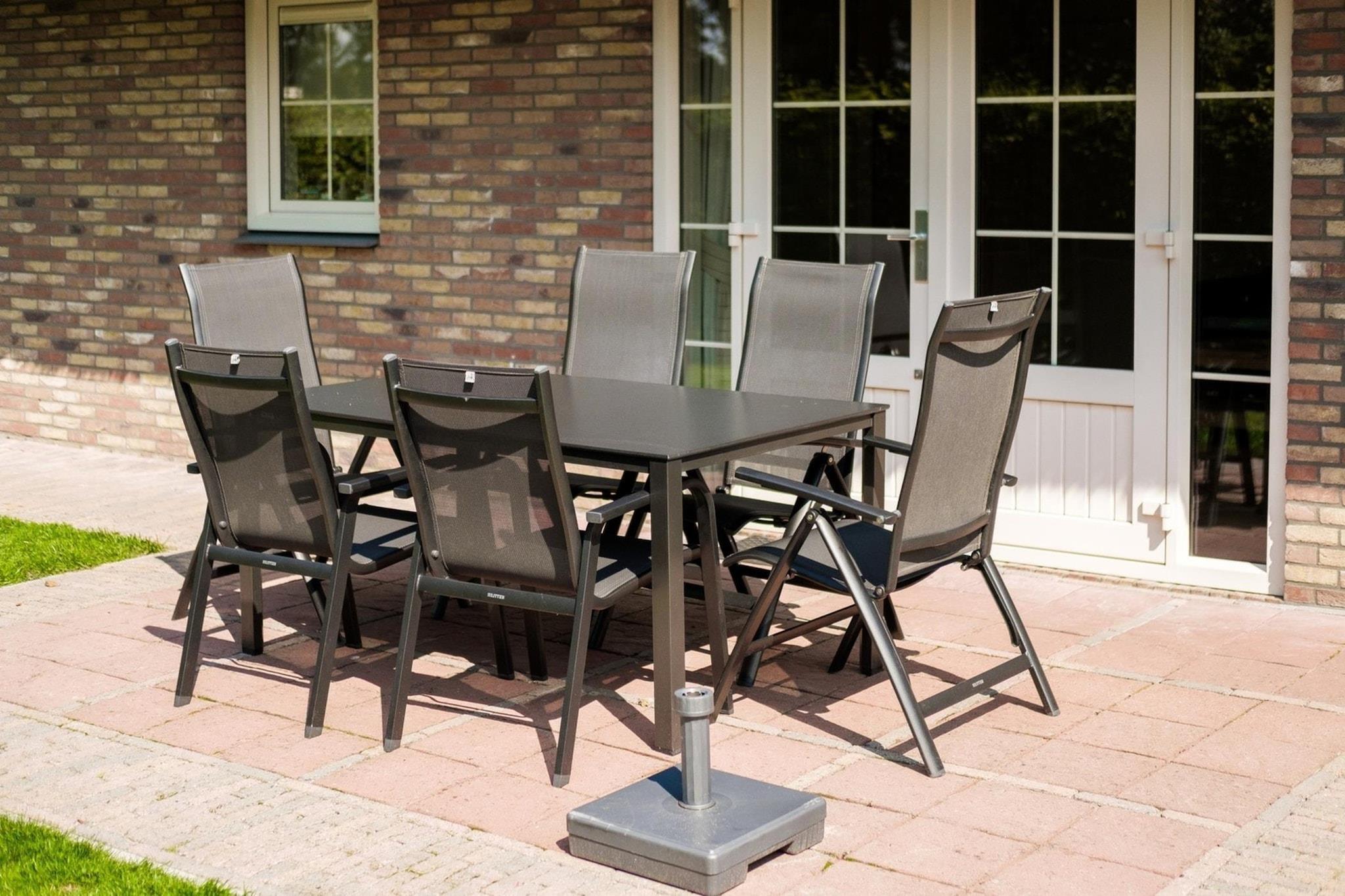 Stueetage: (åbent køkken(kogeplade(Komfur med fire kogeplader, gas), elkedel, brødrister, kaffemaskine(kaffetragt), ovn, combi-mikroovn, opvaskemaskine , køle-fryseskab, , ), stue / spisestue(Fjernsyn(kabel, Hollandske TV-kanaler, Tyske TV-kanaler), spisebord, sofahjørne), Soveværelse med badeværelse(dobbeltseng(180 x 200 cm), badekar, håndvask, toilet)) På 1. etage: (soveværelse(dobbeltseng(180 x 200 cm)), soveværelse(enkeltseng(90 x 200 cm)), soveværelse(enkeltseng(90 x 200 cm)), badeværelse(bruser, håndvask), toilet(håndvask, toilet)) Havemøbler, Bubble bath, sauna, vaskemaskine, patio, have, grill, parkering, strygebræt, strygejern, Ladestation til el-biler