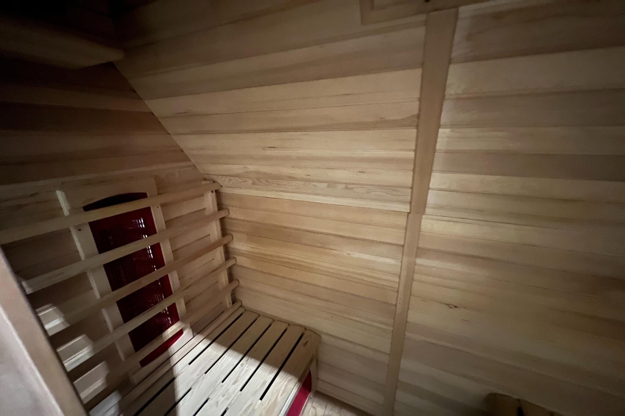 Stueetage: (åbent køkken(elkedel, komfur(Komfur med fire kogeplader), kaffemaskine(kaffepude), combi-mikroovn, opvaskemaskine , køle-fryseskab), stue / spisestue(Fjernsyn, radio, CD-afspiller), soveværelse(2x enkeltseng(80 x 200 cm)), badeværelse(bruser, håndvask, toilet)) På 1. etage: (soveværelse(dobbeltseng), soveværelse(2x enkeltseng), Repos) mikrobølgeovn, infrarød sauna, patio, varme, terrasse, have, havemøbler, Parasol, bordtennisbord, cykler til rådighed(betalt)