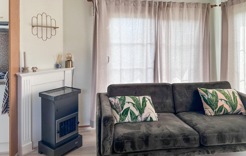 Indvendigt venter der jer et soveværelse med dobbeltseng hvor der er god plads til baggage. Opholdsstuen er hyggeligt indrettet og husdyr er hjerteligt velkomne.
