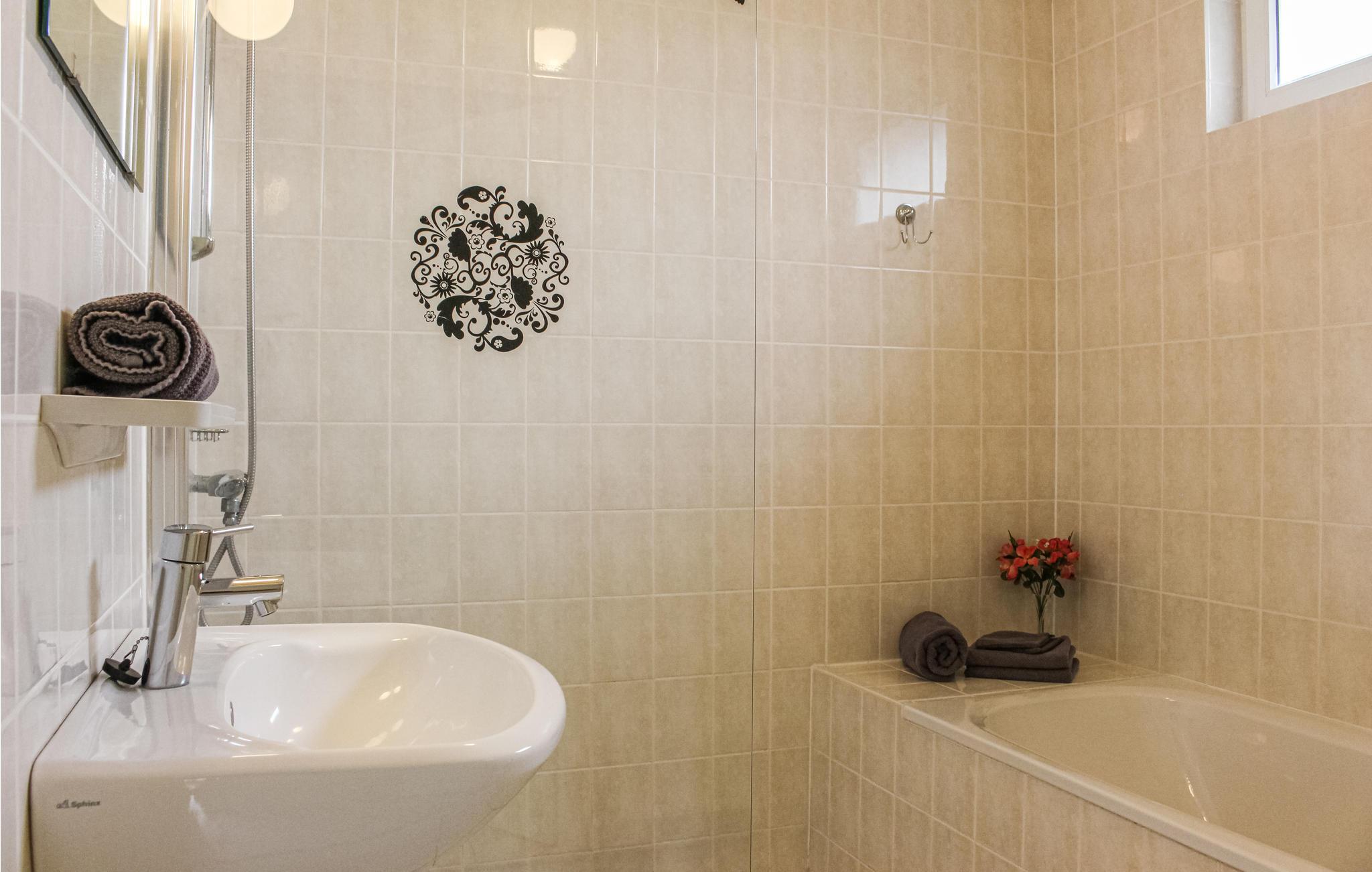 Badeværelse (nr. 1) - Varmt og koldt vand. Bruser og badekar