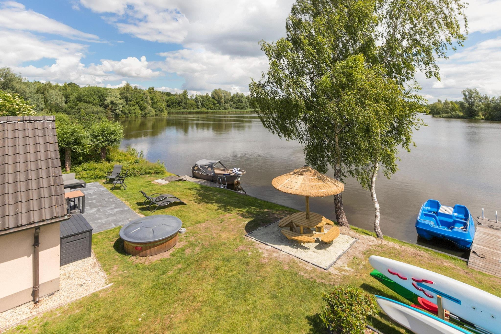 Bo i dette luksuriøse, fritliggende feriehus, som ligger ved en stor bade-/surfingsø og fiske-/vandvej. Udstyret med en udendørs spa og finsk sauna, kan du bo komfortabelt med familie og venner. Vlagtwedde er en lille by kendt for sit maleriske landskab, rige historie og kulturelle arv. Stedet ligger nær grænsen til Tyskland og er omgivet af skove, enge og floder. Du kan nyde gåture, cykle og fiske i de nærliggende naturreservater. Det stråtækte stuehus står på en meget rummelig grund og deler lege- og vandsportsfaciliteter med nabohuset, såsom netgynge, stor trampolin, vandret stang og vippe. I vandsportssæsonen, fra begyndelsen af maj til september, venter den åbne turbåd med påhængsmotor ved anløbsbroen med badestige (ikke nødvendigt med kørekort). Boligen har en rummelig have med en møbleret terrasse med loungesofa, liggestole, picnicbord med stråtækt parasol, en udendørs spa med plads til 6 gæster og en koldtvandsbassin. Derudover kan du bruge kajakken til 2 personer, kanoen til 2 personer, vandcyklen til 4 personer, 2 SUP boards og en robåd til børn.
