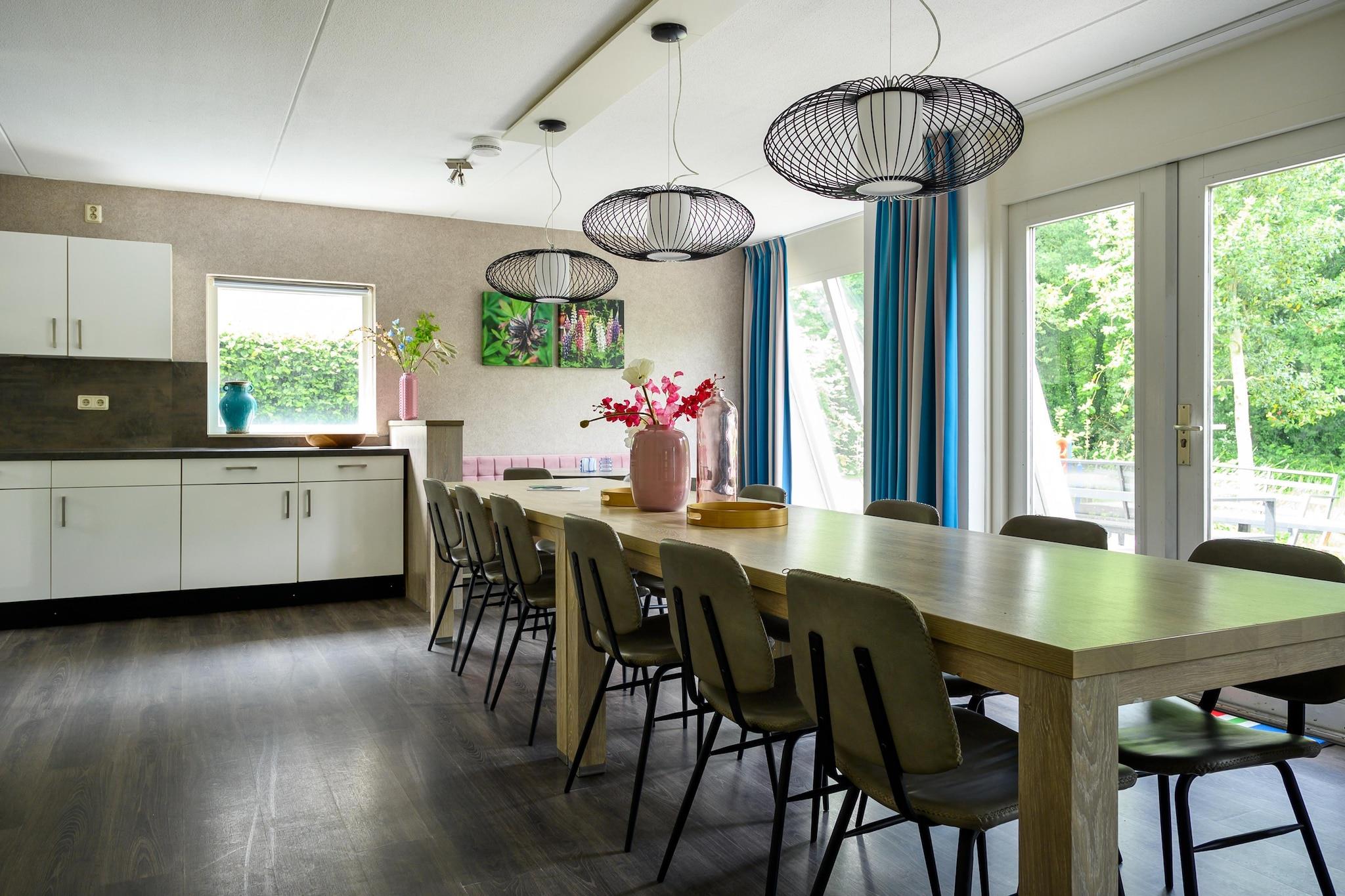 Dette hyggeligt indrettede familie- og vennerhus ligger i udkanten af skoven. Det er ideelt til en ferie med en stor gruppe venner eller familier. Huset har wellness-faciliteter såsom et brændefyret spabad i haven og en finsk sauna med lysterapi og infrarøde varmeovne Det lyse, solrige hus er moderne og praktisk indrettet. Nedenunder er der 2 soveværelser og 2 badeværelser, ovenpå er der 4 soveværelser, 2 med altaner og 2 badeværelser. Huset ligger på et lille hegn i skovbrynet og en kort gåtur fra den subtropiske swimmingpool. Vlagtwedde er kendt for sit maleriske landskab, rige historie og kulturarv. Det ligger tæt på grænsen til Tyskland og er omgivet af skove , enge og floder Du kan nyde gåture, cykle og fiske i de nærliggende naturreservater. Den solrige have har en stor og rummelig terrasse med et luksuriøst loungesæt, 2 luksuriøse liggestole, et picnicbord, et barbord med 4 stole og en udendørs pejs/grill. For børnene er der en legeplads med en sandbanke og en trampolin. Der er en badestige i vandet bag huset. Der er også 2 SUP boards til rådighed, med hvilke du kan gå direkte på vandet fra huset.