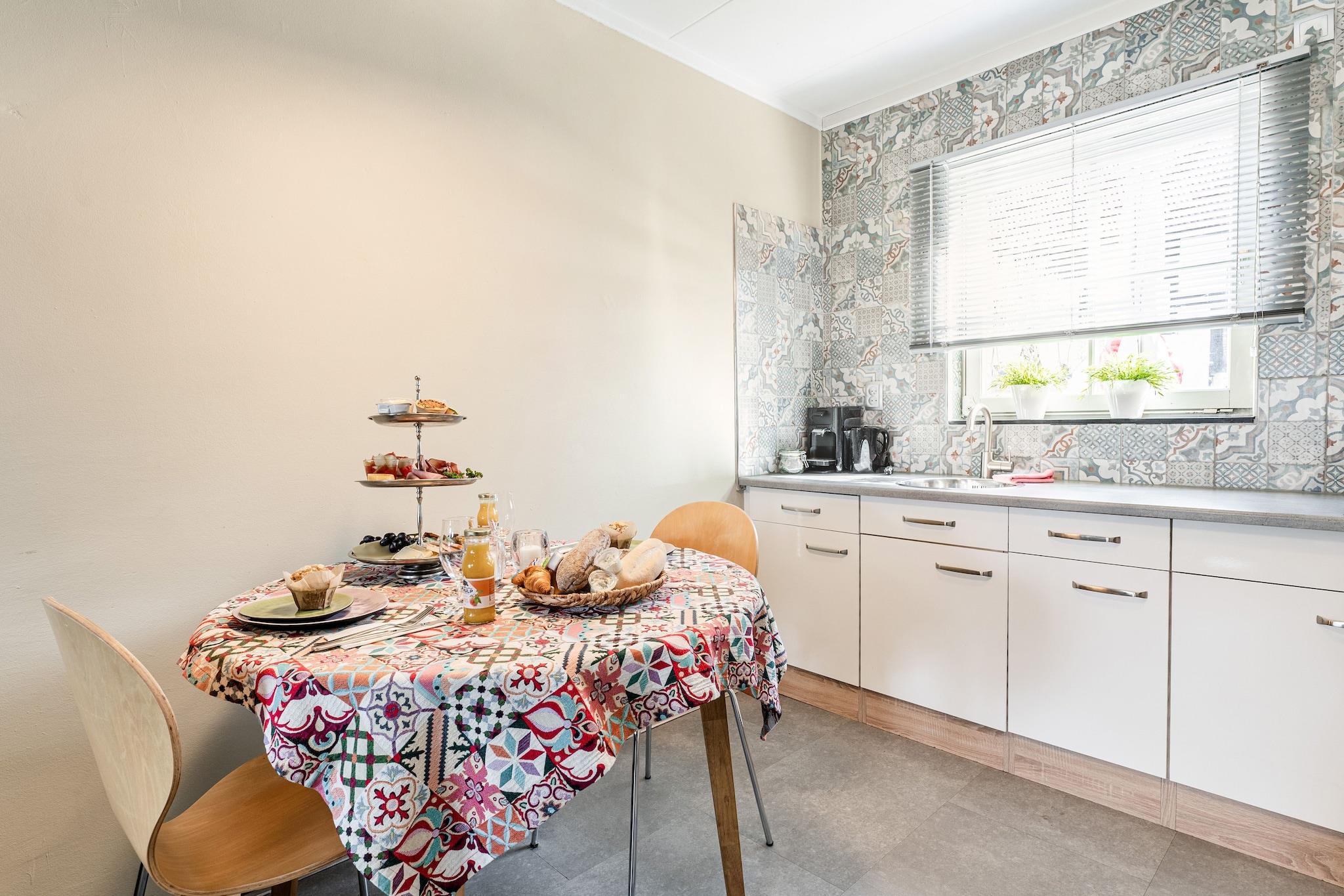 Oplev denne hyggelige lejlighed i et sommerhus, perfekt beliggende i det naturskønne Voerendaal. I stueetagen finder du et lyst, åbent køkken udstyret med komfur, kaffemaskine og mikrobølgeovn, ideelt til at tilberede måltider. Den indbydende stue/spisestue tilbyder et komfortabelt siddeområde og et spisebord, hvilket gør det til et fantastisk sted at slappe af. Et praktisk toilet er også placeret på denne etage for nemheds skyld. Gå ovenpå for at finde to fredelige soveværelser. Det første har en komfortabel dobbeltseng, mens det andet har to enkeltsenge, der tilbyder fleksible sovepladser til op til fire gæster. Det moderne badeværelse ovenpå har et forfriskende brusebad og en håndvask. Franske døre åbner direkte fra opholdsstuen til en privat terrasse, der fører ind i en dejlig have, hvor du kan nyde den friske luft med havemøbler. Dette dejlige tilflugtssted tilbyder bekvem parkering på stedet, med yderligere offentlig parkering i nærheden. Voerendaal ligger i den maleriske Sydlimburg-region i Holland, kendt for sine bølgende bakker, charmerende landsbyer og rige historie. Det er en ideel base for at udforske nærliggende attraktioner som den romerske historie i Heerlen, de berømte mergelgrotter i Valkenburg eller den pulserende by Maastricht.