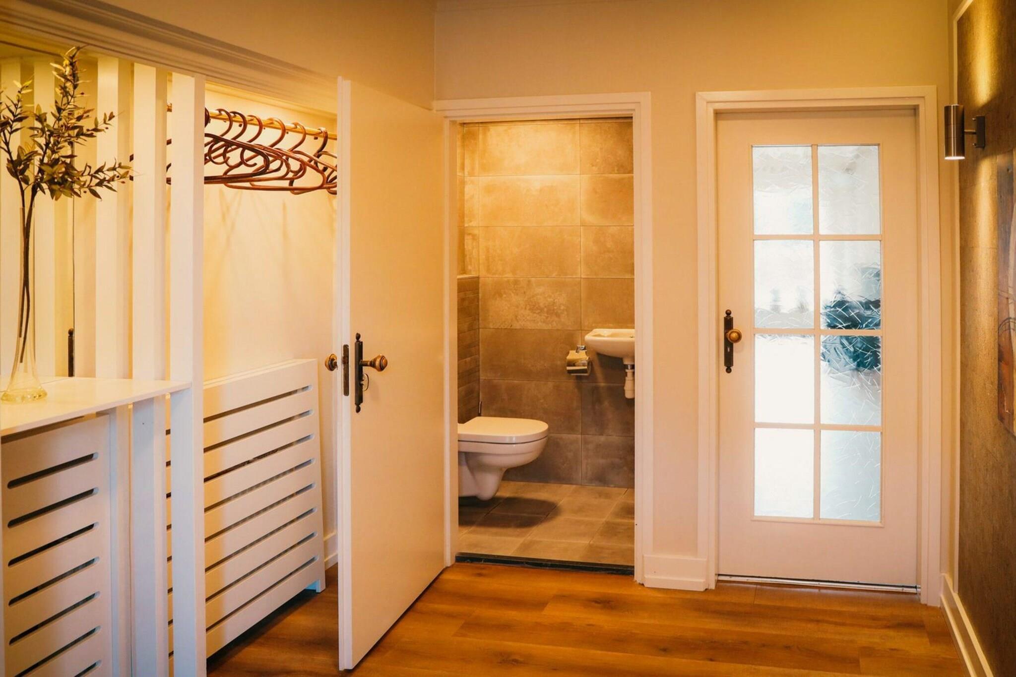 Charmerende gruppeferie med privat pool og wellness-komfort Velkommen til din perfekte gruppeflugt i Voorthuizen, beliggende i Veluwes frodige grønne områder. Denne smukt indrettede villa rummer komfortabelt store grupper og kombinerer moderne luksus med landlig charme. Med fem soveværelser i hovedhuset og to i gæstehuset - hver med sit eget badeværelse - tilbyder dette rummelige hjem privatliv og komfort for op til 14 gæster. Indenfor kan du slappe af ved den hyggelige gaspejs eller forkæle dig selv med wellness med den infrarøde sauna, udendørs boblebad og en privat pool (åben maj-sept) kun til din gruppe. Natur, privatliv og uovertruffen afslapning Denne villa ligger i udkanten af skoven og giver den perfekte blanding af ro og bekvemmelighed. Uanset om du slapper af i den indhegnede have, spiser al fresco på terrassen eller nyder det gennemgående underholdningsrum, er der noget for enhver smag. Det åbne køkken er fuldt udstyret til gruppemåltider, og flere siddepladser sikrer både fælles stunder og personligt rum. Villaens gennemtænkte layout og luksusfunktioner gør den ideel til genforeninger, festligheder eller afslappende ferier. Udforsk Voorthuizen og spisesteder i nærheden Beliggende i hjertet af Guelders, er du kun få minutter fra naturskønne vandre- og cykelstier i Veluwe. Gå en tur ind i Voorthuizen for hyggelige caféer og lokale restauranter, eller nyd en gruppe-grill lige derhjemme. Selvom kæledyr ikke er tilladt, lover dette paradis et fredfyldt, rent og allergivenligt ophold for hver gæst.
