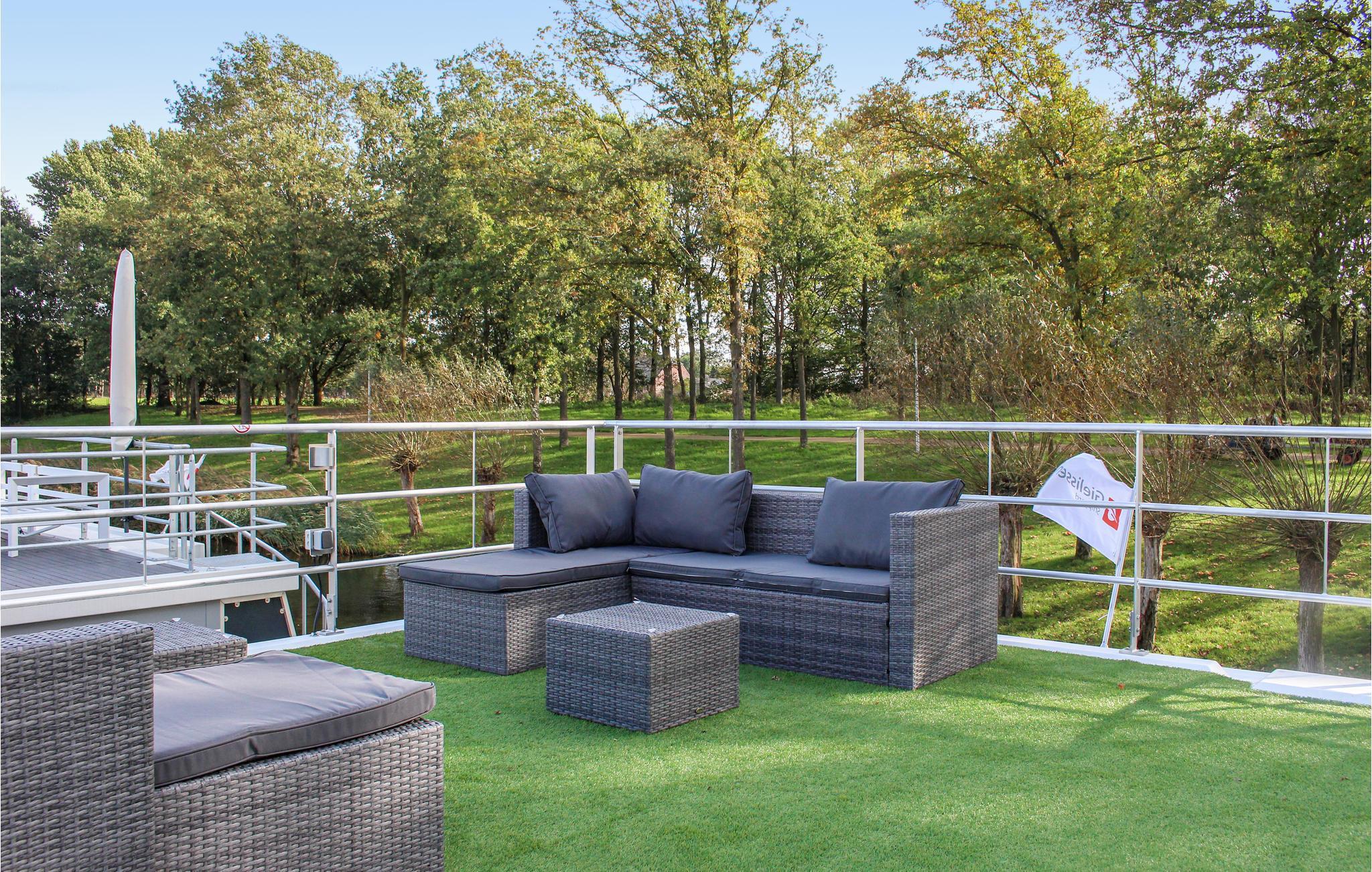 Over anløbsbroen når du bagdækket på husbåden, hvorfra du har adgang til det flydende hus gennem en af dørene. Gennem de store skydedøre i stuen kan du gå til det rummelige fordæk. Her finder du et havebord med justerbare stole, hvor du kan slappe af. Her kan du også komme i vandet via en trappe og muligvis fortøje din (mindre) båd. For øvrig har husejeren et SUP-bræt og en robåd, der venter på dig! Solbaderne vil sætte pris på det store soldæk, der er tilgængelig via en smal vindeltrappe. Der er et smukt lounge-sæt, en parasol og en gasgrill. Herfra har du smuk udsigt over lystbådehavnen og søen. Rejser du med små børn? I betragtning af, hvor lang tid du vil være på og omkring vandet, er det ikke uklogt at medbringe en redningsvest til de små.