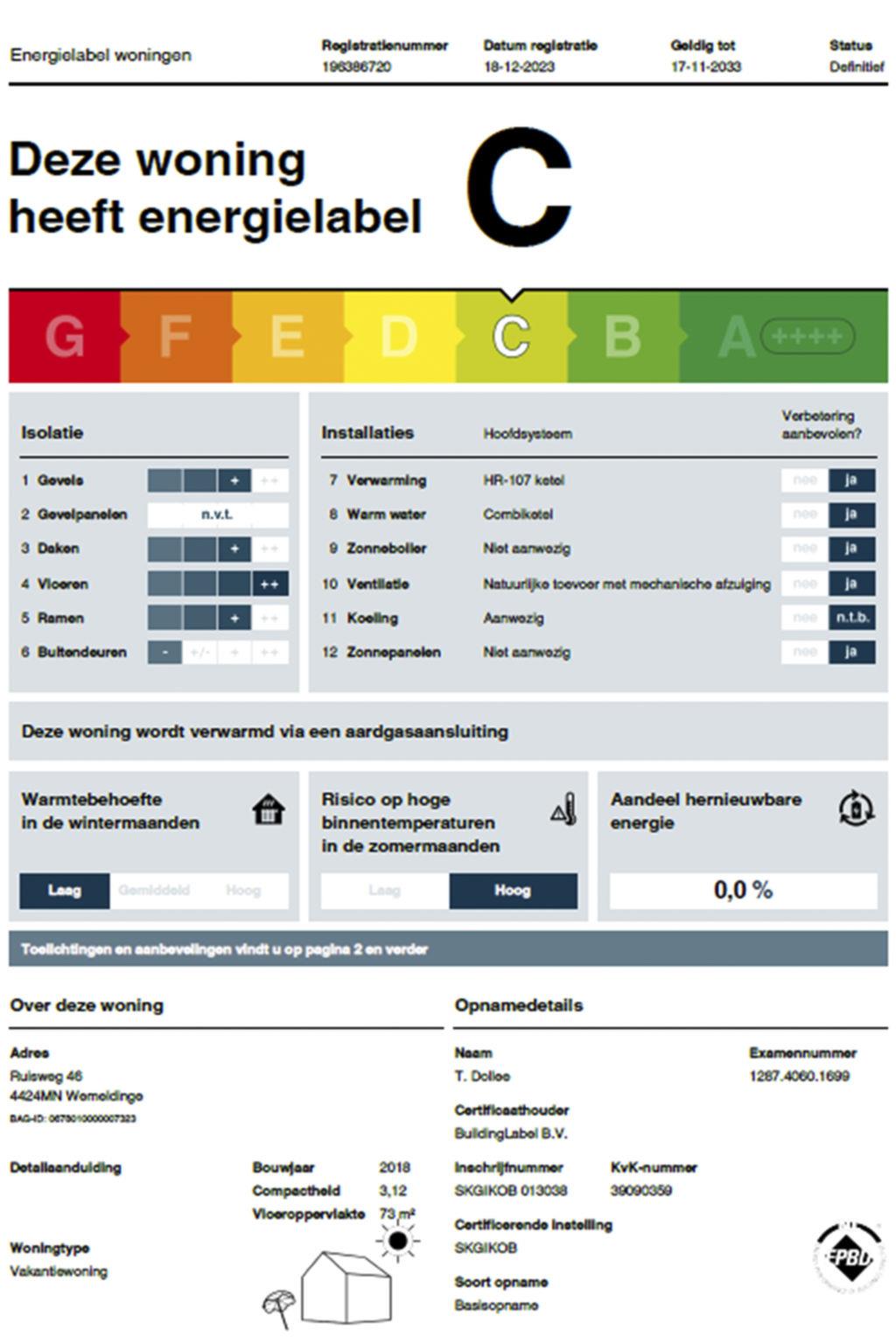 "Ruisweg 46", 3-room bungalow 83 m2. Comfortable and modern furnishings: entrance hall with separate WC. Living/dining room with dining table, flat screen and air conditioning. Exit to the terrace. 2 double bedrooms, each room with 2 beds (80 cm, length 200 cm). Open kitchen (oven, dishwasher, 4 induction hot plates, kettle, microwave, freezer, electric coffee machine, cooking island). Exit to the terrace. Shower. Heating, air-conditioning. 2 terraces. Terrace furniture, deck chairs (2), box-room. View of the lake. Facilities: washing machine. Internet (WiFi, free). Parking (1 car) at the house. Please note: non-smoking house. Smoke alarm. The house has a gas fireplace and is located by the water. Bookings accepted for holiday purposes only. A deposit of 100 EUR per person can be charged on site.