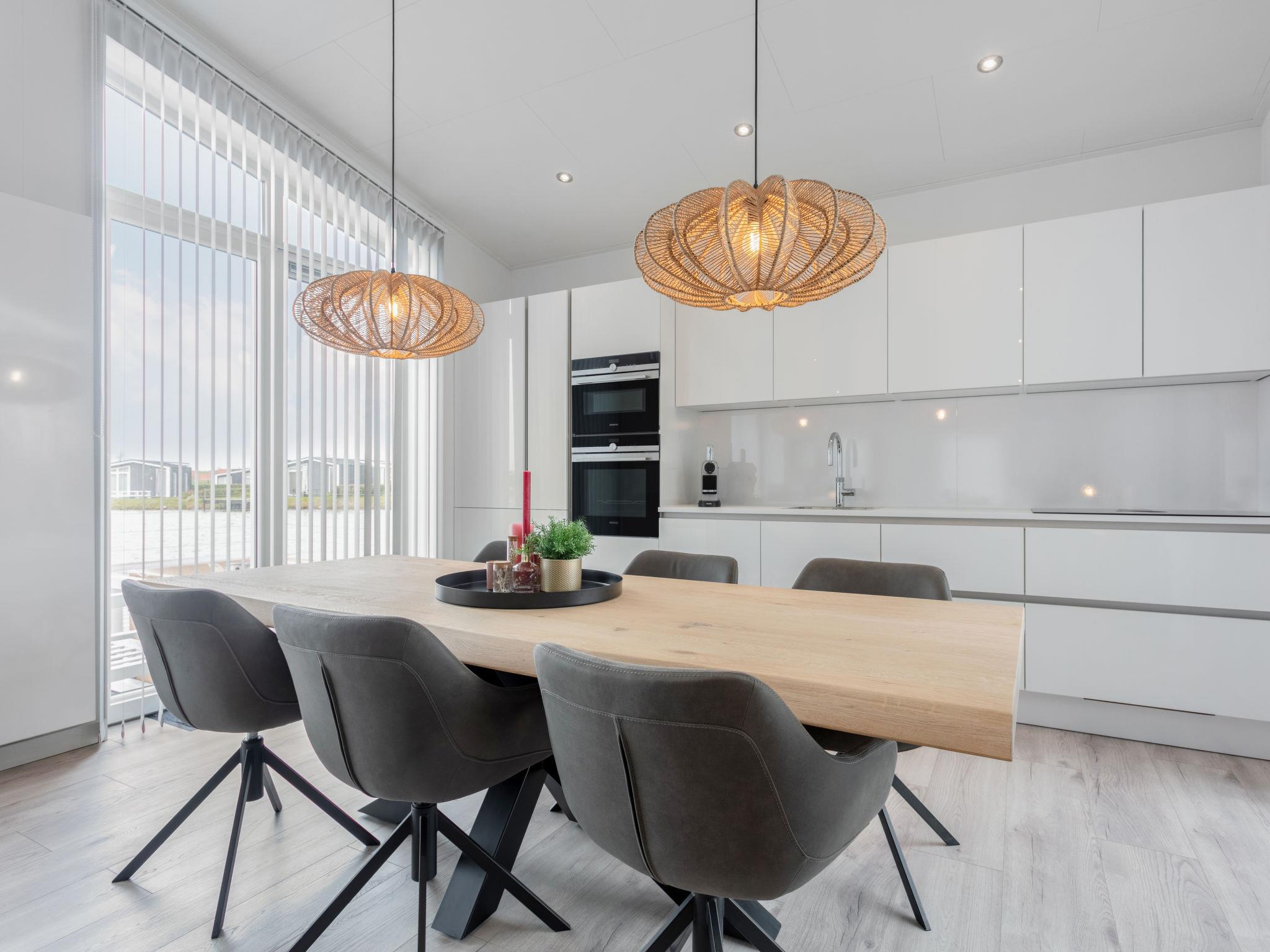 "Ruisweg 12", 4-room bungalow 93 m2. Comfortable furnishings: entrance hall with separate WC. Living/dining room with dining table and air conditioning. Exit to the terrace. 1 double bedroom with 2 beds (80 cm, length 195 cm), shower/WC, flat screen and air conditioning. 1 double bedroom with 2 beds (80 cm, length 195 cm), air conditioning. 1 double bedroom with 1 x 2 bunk beds (80 cm, length 195 cm), air conditioning. Open kitchen (oven, dishwasher, 4 induction hot plates, toaster, kettle, freezer, electric coffee machine, combination microwave, fondue Set (cheese)). Exit to the terrace. Shower. Electric heating, Electric fireplace. Terrace. Terrace furniture, deck chairs, box-room. View of the lake. Facilities: washing machine, dryer, hair dryer. Internet (WiFi, free). Parking (2 cars) at the house. Please note: non-smoking house. Smoke alarm, fire extinguisher. The kettle is a Quooker. There is an outdoor shower on the terrace. The hot tub is for private use only. Bookings accepted for holiday purposes only. A deposit of 100 EUR per person can be charged on site.