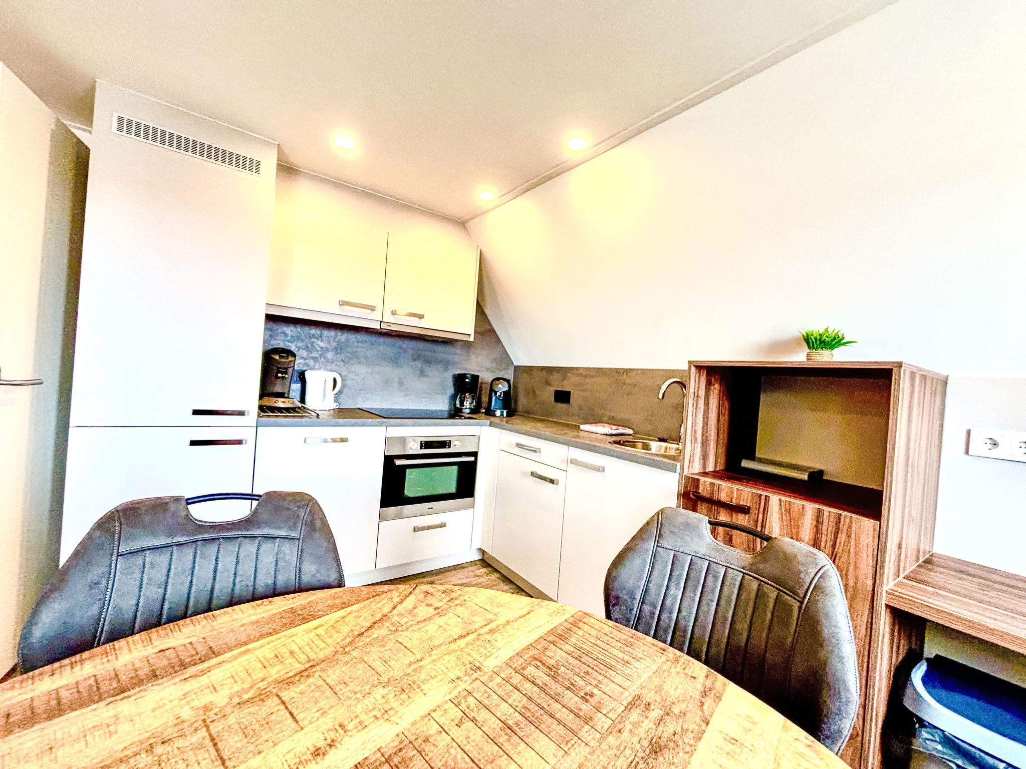 "Beach House Westkapelle 107.6", 3-room apartment on 2nd floor. Object suitable for 2 adults + 2 children. Fully renovated in 2024, beautiful and modern furnishings: open living/dining room with TV and gas heating. Exit to the terrace. 1 children's room. 1 double bedroom with 2 beds (80 cm, length 200 cm) with shower/WC. Open kitchen (oven, dishwasher, 4 induction hot plates, kettle, microwave, freezer, electric coffee machine). (private), Sauna. Terrace furniture. Facilities: children's high chair, baby cot. Parking (1 car) at the house. E-charging station. A deposit of 100 EUR per person can be charged on site.