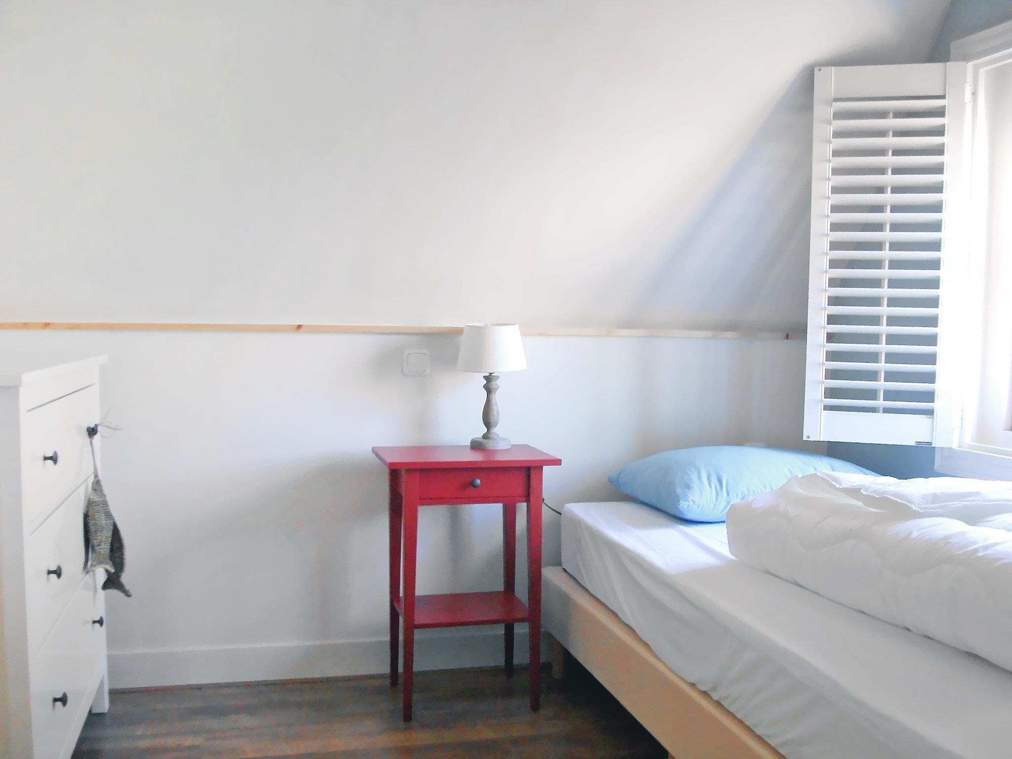 "Wiringhervilla 4", 3-room house 125 m2. With sloping ceilings, comfortable and stylish furnishings: entrance hall. Living/dining room with dining table and satellite TV (flat screen), hi-fi system, DVD and heating stove. Exit to the garden. Luggage room. Alcove with 1 french bed (1 x 140 cm, length 200 cm). Open kitchen (5 hot plates, oven, dishwasher, kettle, microwave, electric coffee machine). Shower/WC. Floor heating. Upper floor: 1 room with 1 double bed. 1 room with 2 beds. Bath/WC. Terrace, large garden 400 m2. Terrace furniture. Facilities: washing machine, dryer, children's high chair. Parking at the house. Please note: non-smoking house. Maximum 2 pets/ dogs allowed. Smoke alarm. Hot tub in the garden (extra). Instead of an enclosed bedroom, some sleeping areas are located in an open-plan area (gallery, alcove, etc.).