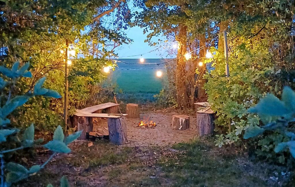 I den store have kan I om aftenen benytte bålpladsen ved skovkanten, og I har masser af plads til udendørslege. Nyd udendørsspabadet, som er særligt indbydende især fra oktober til marts. Med udsigt til diget er et varmt bad uimodståeligt i vintermånederne. Når efteråret kommer, og nætterne bliver længere, kan I under den klare vinternatshimmel betragte de funklende stjerner. Den forhøjede siddeplads sørger for, at selv mindre børn kan bruge den sikkert og komfortabelt.
