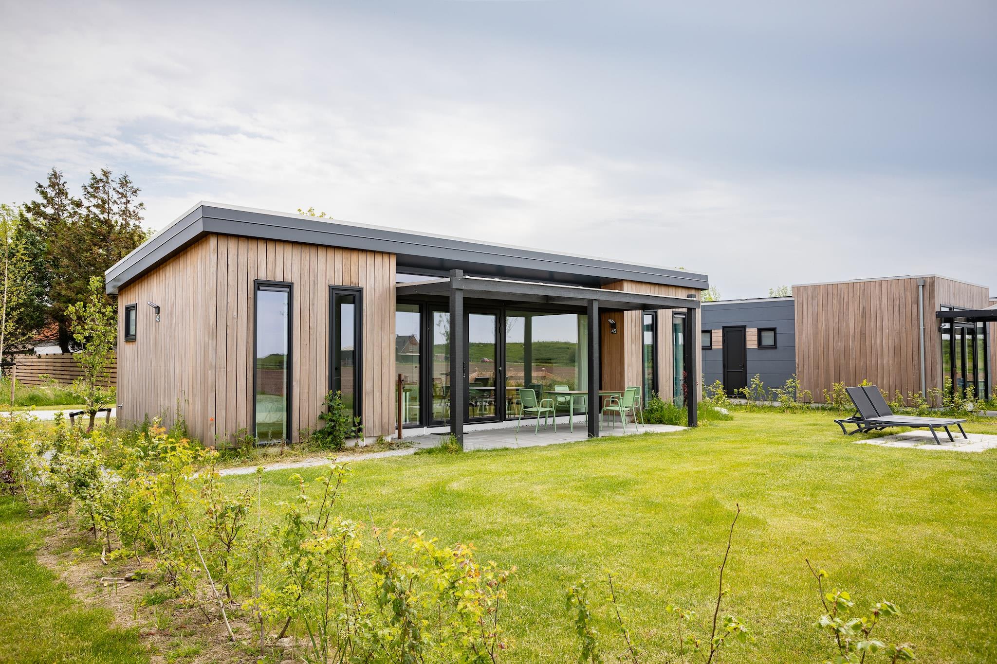 Eco-Chic Lodge på vandet Beliggende på det fredelige feriested Wijdenes tilbyder denne luksuriøse en-etagers lodge et moderne tilflugtssted lige ved bredden af Markermeer. Lodgen er designet med komfort og bæredygtighed i tankerne og har et luftigt opholdsrum med et smart-tv og et åbent køkken udstyret med en kombineret mikroovn, opvaskemaskine og kaffemaskine. Begge soveværelser har en-suite badeværelser og tv'er med plys-boksemadrasser arrangeret som dobbeltværelser eller singler. Store havedøre bringer naturligt lys ind og åbner ud til din private, overdækkede terrasse - perfekt til morgenkaffe eller udsigt til solnedgangen. Natur, charme og lokale lækkerier Blot 12 km væk ligger den pulserende by Hoorn, rig på hollandsk historie og lokal flair. Nyd cafeer ved kanalen, unikke butikker og det berømte Westfries Museum. På resortet kan du slappe af i et roligt, trafikfattigt miljø omgivet af grønne marker og søudsigt. Parkens intime størrelse sikrer fred og privatliv, mens nærliggende stier inviterer dig til at udforske til fods eller på cykel. Kæledyrsvenligt paradis Tag din lodne ven med for sjov! Markermeer-kysten byder på fantastiske stier til hundevandring, og de store åbne områder ved Wijdenes er ideelle til at lege apport. Nyd en kæledyrsvenlig picnic på diget eller tag til nærliggende Hoorn, hvor flere caféer byder hunde med vandskåle og logrende hale velkommen. Bare husk at nævne dit kæledyr under reservationen - pladserne fyldes hurtigt i dette kæledyrsindbydende tilflugtssted!