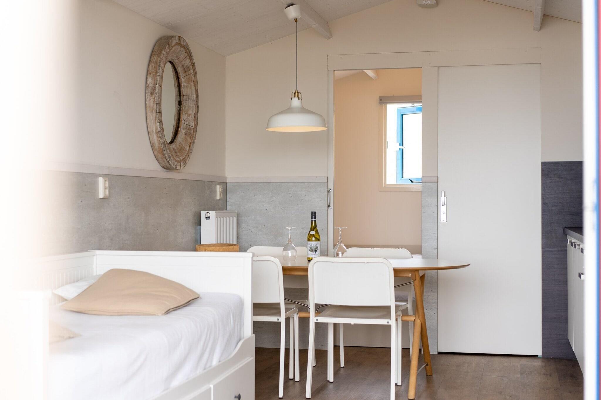 Disse dejlige strandhuse har en storslået beliggenhed i klitterne, direkte på den smukke Nordsøstrand Julianadorp. Her kan du nyde alle de fordele, som stranden har at byde på. Et meget populært område med et bredt og alsidigt udbud af (vandsports)aktiviteter. Strandhuset er indrettet på en komplet og omhyggelig måde. Der er lys stue med sofa. Sofaen kan også bruges som dobbelt sovesofa. I køkkenet i åbent plan finder du blandt andet en mikrobølgeovn. Der er et soveværelse med dobbeltseng. Badeværelset har bruser og toilet. Udendørs har I udgang til overdækket terrasse med havemøbler. Denne type strandhus ligger på siden af klitterne. På grund af sin beliggenhed i 2 meters højde har man stadig udsigt til havet fra terrassen. Du kan nå indgangen til strandhuset via en trappe; der er ingen trappeport. Fra dit sommerhus kan du træde direkte ud på stranden. Du parkerer din bil på den offentlige parkeringsplads. Den nærmeste parkeringsplads er Parking Noorderbad i Dorpsduinen-gaden. Derfra kan du nå dit strandhus til fods via en asfalteret sti over stranden. Et ophold i disse strandhuse er en unik oplevelse!