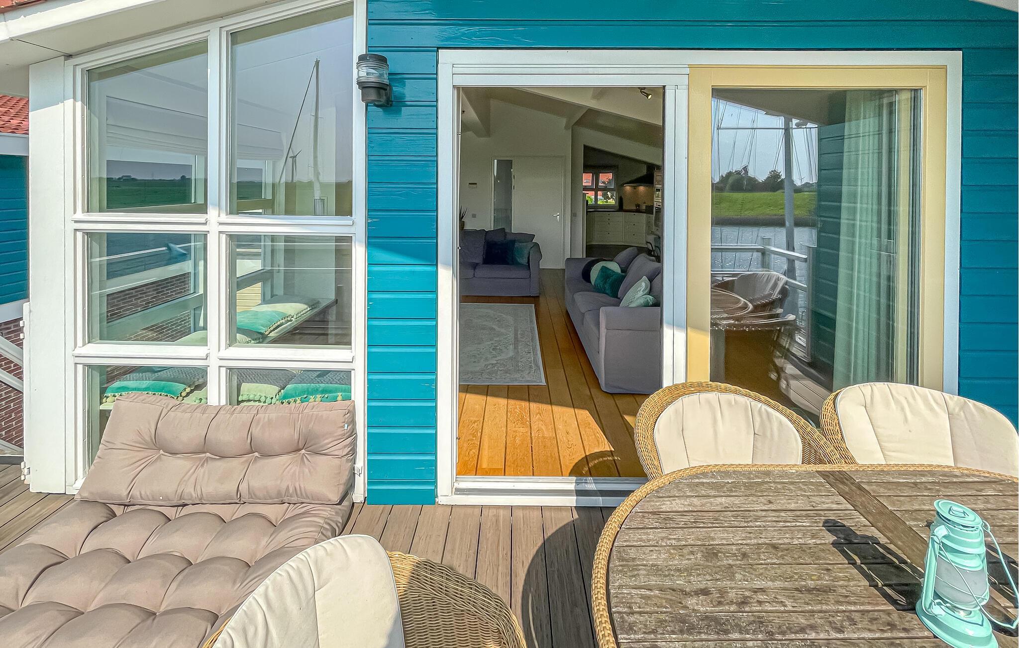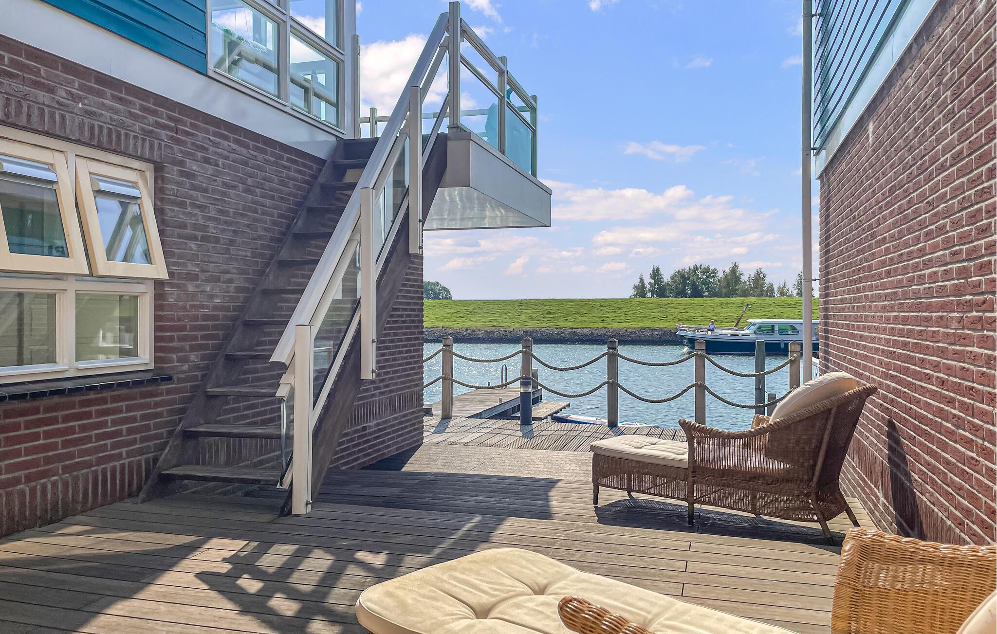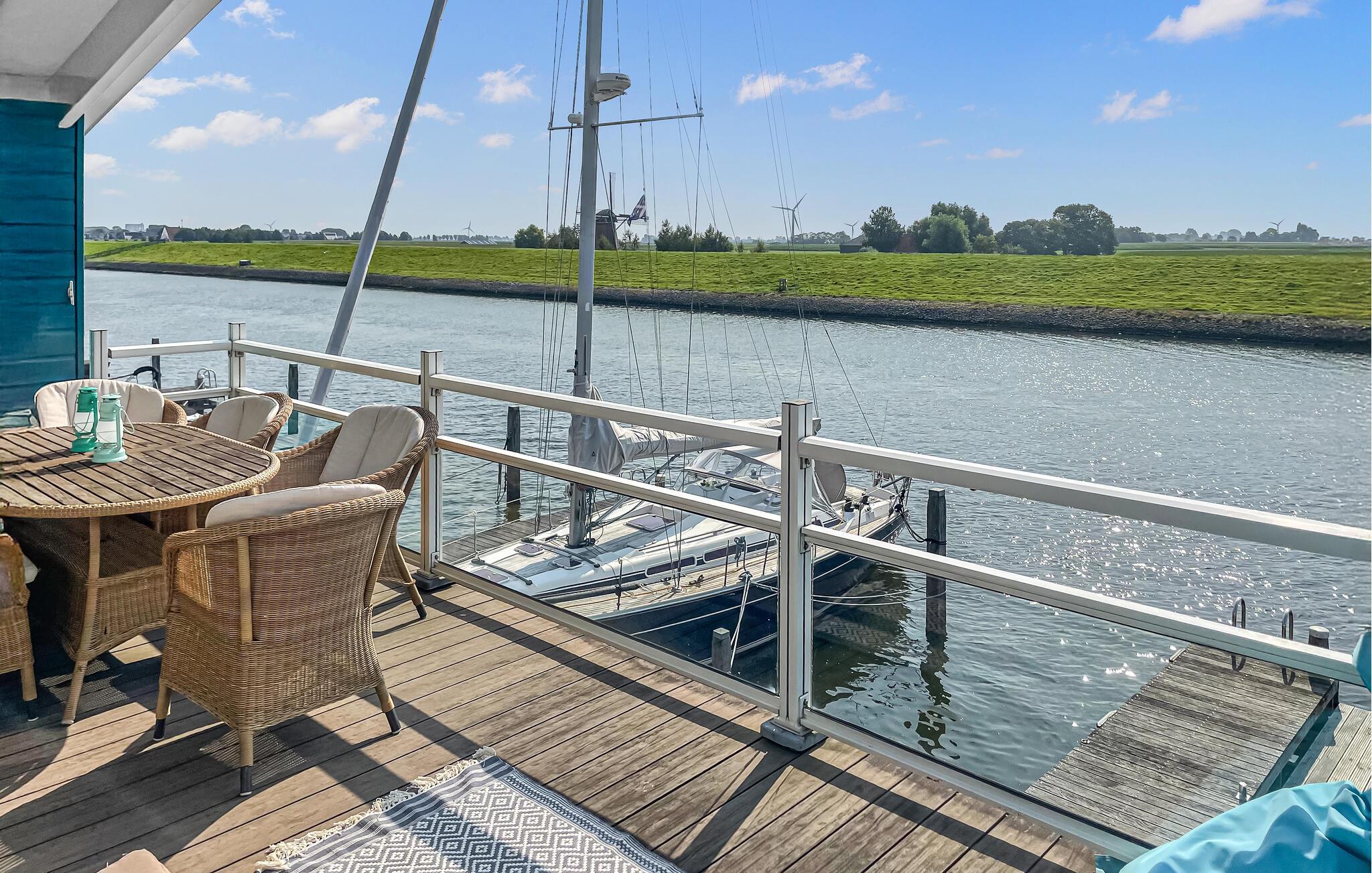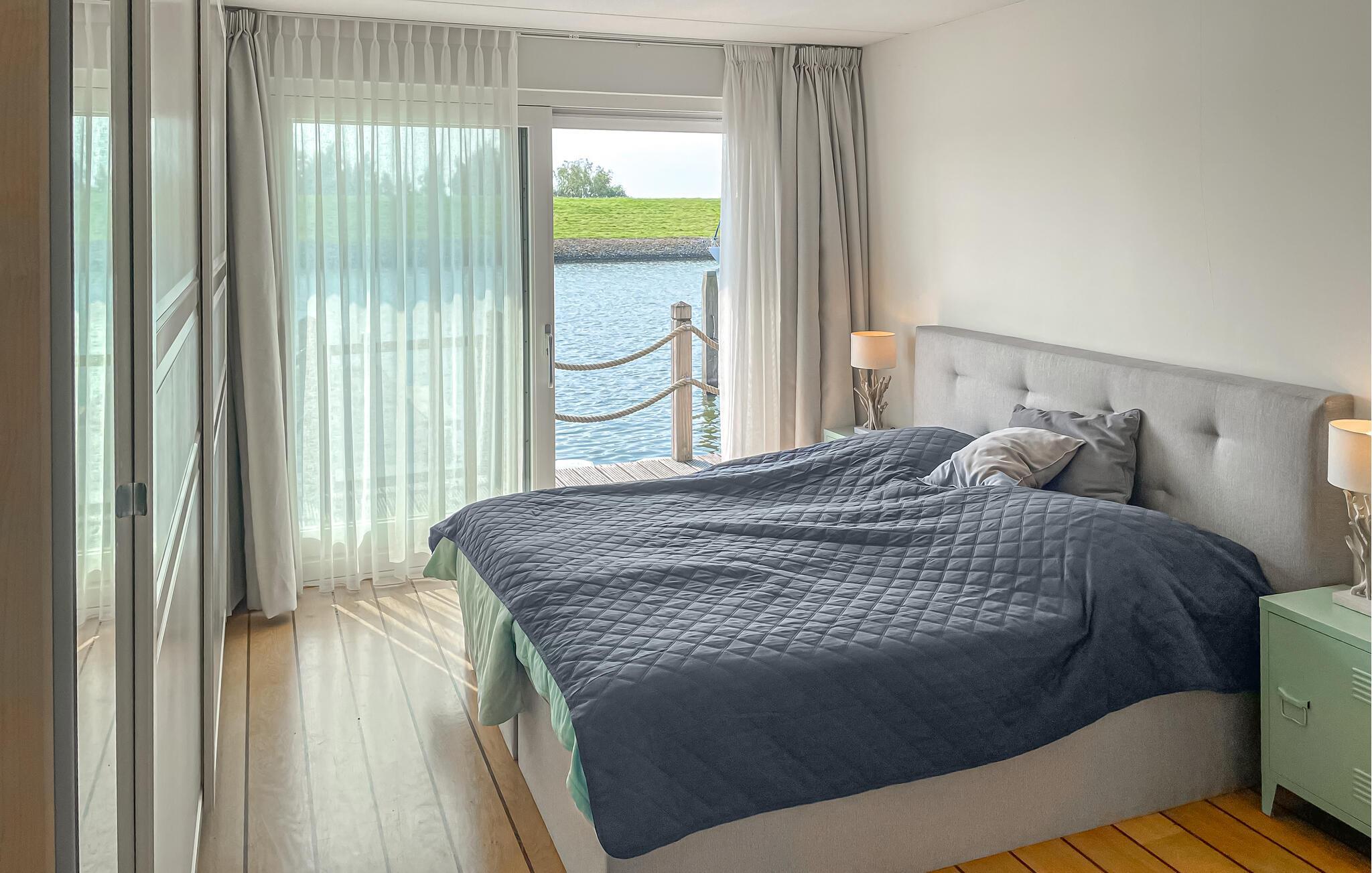 Oplev en dejlig ferie i dette feriehus beliggende direkte ved vandet. Dette komfortable hus ligger direkte ved vandet og tilbyder en storslået panoramaudsigt over landskabet og forbipasserende sejlbåde. Slap af og genoplad batterierne her. Læn jer tilbage i sofaen med en kop kaffe, lav et lækkert måltid, eller tilbring en afslappende aften foran fjernsynet. Start dagen med en god morgenmad på terrassen og nyd den maritime atmosfære. Fordyb jer derefter i jeres ferielæsning eller planlæg jeres næste ferieeventyr fra komforten af liggestolene. Hvis I har lyst, kan I sidde på molen og dingle med fødderne i vandet. Tag lange cykelture gennem det idylliske frisiske landskab og nyd den storslåede udsigt. Benyt lejligheden til at tage en sejltur på kanalerne og søerne, der forbinder Workum med den omkringliggende region. Oplev den charmerende by Workum med dens historiske huse, små butikker og hyggelige caféer. Besøg også Jopie Huisman Museum, som giver et fascinerende indblik i frisisk kunst og kultur.