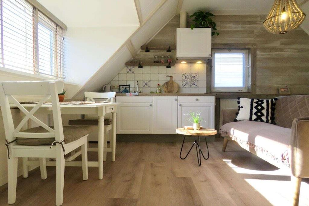 Stuen har et smukt åbent køkken, hvor du har alt hvad du behøver for at tilberede et lækkert måltid. Der er en komfortabel seng (størrelse 160 x 200) og et klædeskab. I den åbne stue er der en behagelig sofa og et spisebord, hvor du kan nyde dit måltid. Værelset er udstyret med et tv og gratis WiFi. Det hyggelige badeværelse har en god bruser, håndvask med skab og toilet. Korkgulvet er isoleret og har et varmt udseende. Ved ankomst kan du parkere din bil i indkørslen for at læsse af i fred og ro. Parkeringsbøder er tilgængelige for parkering i Zuid, 5 minutters gang væk. Det er bedst at booke via linket. https://zandvoort.parkeerservice.nl/parkeren-in-garages/plaats-boeken-in-garage-ldc-of-parkeerterrein-de-zuid/ - Vælg en flerdagsbillet - Vælg mellem alle parkeringsmuligheder: Parkeergarage de Zuid - Vælg din ønskede ankomstdato - Find din parkeringsplads - Rul ned og vælg muligheden "Parkeergarage de Zuid". Tilføj dit nummerpladenummer, hvilket er nemmere, da bommen åbner straks ved ind- og udkørsel. Læg i kurv - Bekræft og betal Når du ankommer til Parkeergarage de Zuid, skal du scanne koden. Denne scannes nedefra og op. Tag ikke en billet med dig, da du vil blive opkrævet yderligere EURO15,00 for hver dag, du ikke betaler. Scanneren leder også efter dit nummerpladenummer, og du skal tilsyneladende stå i en bestemt position for at gøre dette. Hvis porten ikke åbner, skal du ringe på dørtelefonen eller ringe +31334611803. Bemærk: Scanningskoden skal bruges ved hver ind- og udgang.