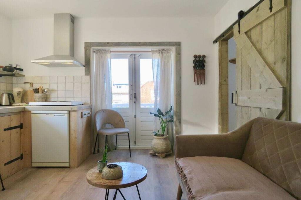 En hyggelig lejlighed på første sal. Fra det åbne køkken ved baren har du en smuk udsigt over Brederodegade. Fra balkonen kan du nyde solnedgangen. Stuen har et åbent køkken, hvor du har alt hvad du behøver for at tilberede et lækkert måltid. Stuen har en behagelig sofa og en bar, hvor to personer kan nyde deres måltid. Værelset er udstyret med et tv og gratis Wi-Fi. Loftsdøren fører til det smukke soveværelse med et klædeskab. Badeværelset har bruser, håndvask og toilet. PVC-gulvet er isoleret og har et varmt udseende.