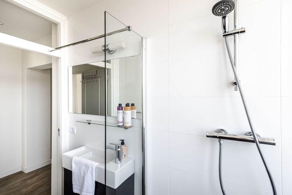 Stueetage: (Køkken(, , , elkedel, brødrister, komfur, kaffemaskine, ovn, mikrobølgeovn, opvaskemaskine , køleskab, fryser), badeværelse(, bruser, håndvask), guest toilet(toilet, håndvask), loungemøbler()) På 1. etage: (soveværelse(, , dobbeltseng), soveværelse(, enkeltseng, enkeltseng), soveværelse(, , enkeltseng, enkeltseng), drying room(, tørretumbler, vaskemaskine, tørreskab)) , , , Stue(, , Fjernsyn, pejs), badeværelse(, toilet, bruser, håndvask, føntørrer), Internetadgang, tørretumbler, vaskemaskine, balkon(havemøbler), varme, parkering, tørreskab