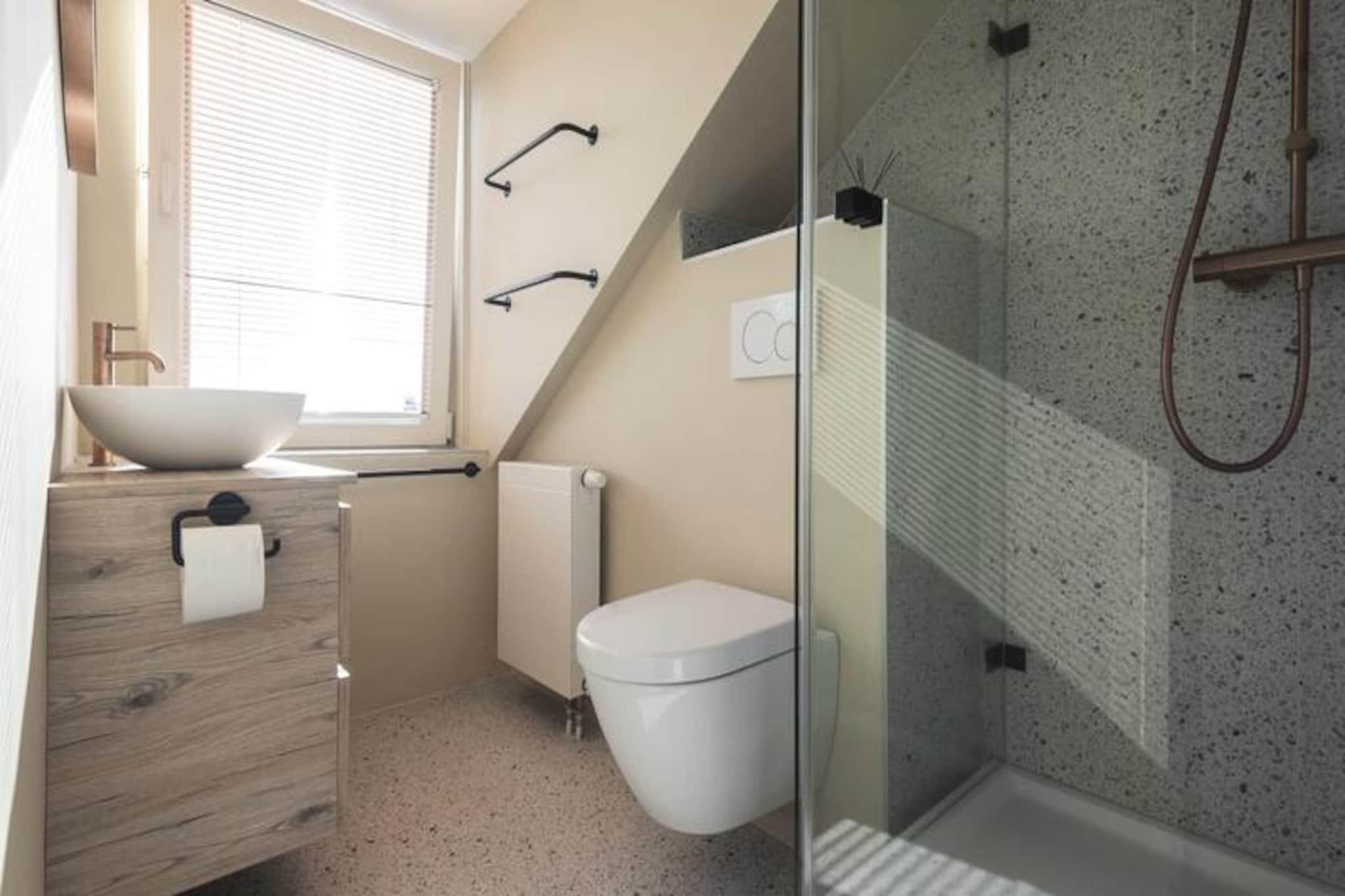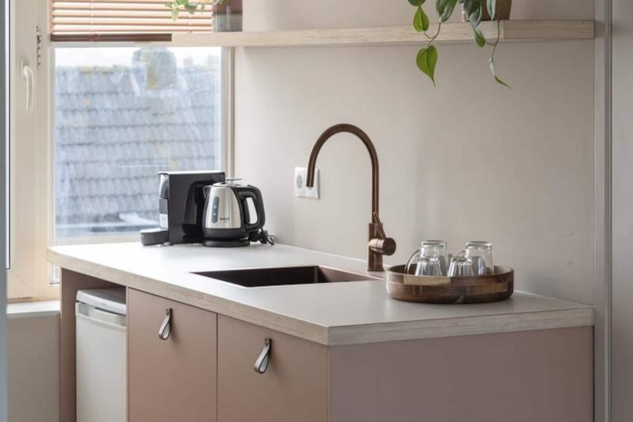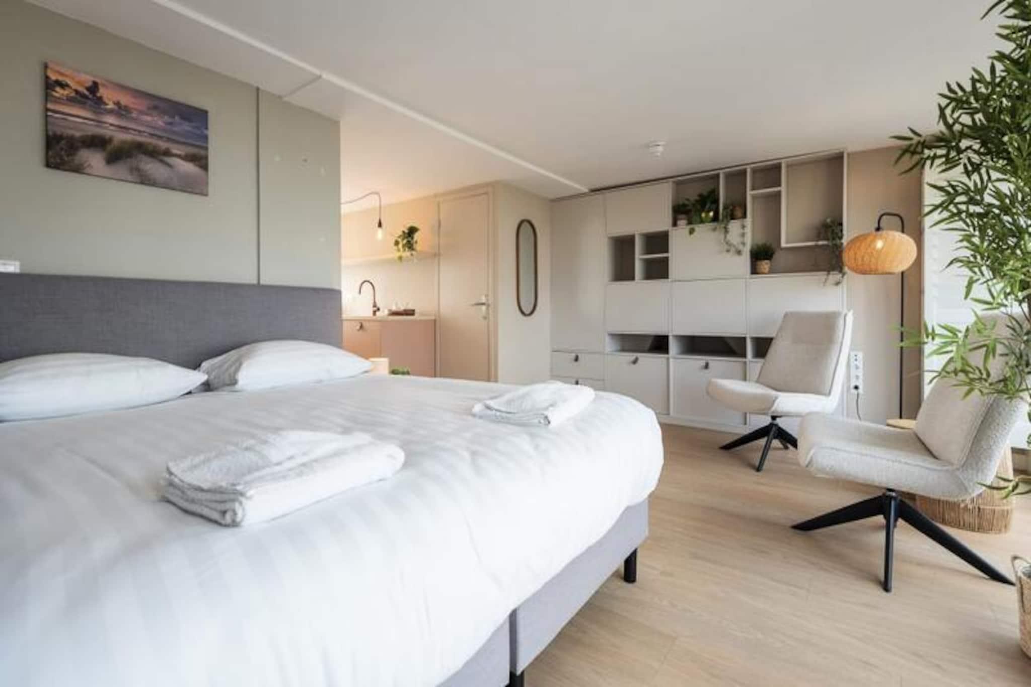 Vågn op til den beroligende lyd af bølger og solopgangens gyldne nuancer i dette elegante studio i loftstil i Zandvoort. Beliggende på anden sal i et moderne hus gemt væk på en rolig gade bag den travle boulevard, tilbyder dette private tilflugtssted en harmonisk blanding af ro og pulserende kystcharme. Kun få minutter fra klitterne og det livlige bycentrum er det en ideel base for at udforske den hollandske kysts skønhed. \n\nTræd indenfor for at finde et lyst og luftigt rum, omhyggeligt designet til at maksimere komfort og stil. Store vinduer på begge sider oversvømmer studioet med naturligt lys, hvilket skaber en varm og indbydende atmosfære. Kingsize-sengen lover afslappende nætter, mens tekøkkenet giver dig mulighed for at tilberede lette måltider, når det passer dig. Det tilhørende badeværelse, udsmykket med terrazzogulv og kobberfarvede armaturer, tilføjer et strejf af elegance til dit ophold. Aircondition, Wi-Fi og et tv sikrer, at moderne bekvemmeligheder altid er lige ved hånden. \n\nFra din private balkon kan du nyde den betagende havudsigt og himlens evigt skiftende farver. Uanset om du nyder en morgenkaffe eller slapper af efter en dag med eventyr, vil landskabet helt sikkert betage dig. Ud over ejendommen tilbyder Zandvoort et væld af aktiviteter, lige fra strandrestauranter og vandsport til vandreture i de nærliggende nationalparker De Waterleidingduinen og Kennemerduinen. \n\nMed sin nærhed til Amsterdam og Haarlem, fremragende offentlige transportforbindelser og den berømte Circuit Park Zandvoort kun en kort afstand, er denne studiolejlighed perfekt placeret til en mindeværdig ferie. Oplev Zandvoorts charme og skab varige minder i denne kystparadis.