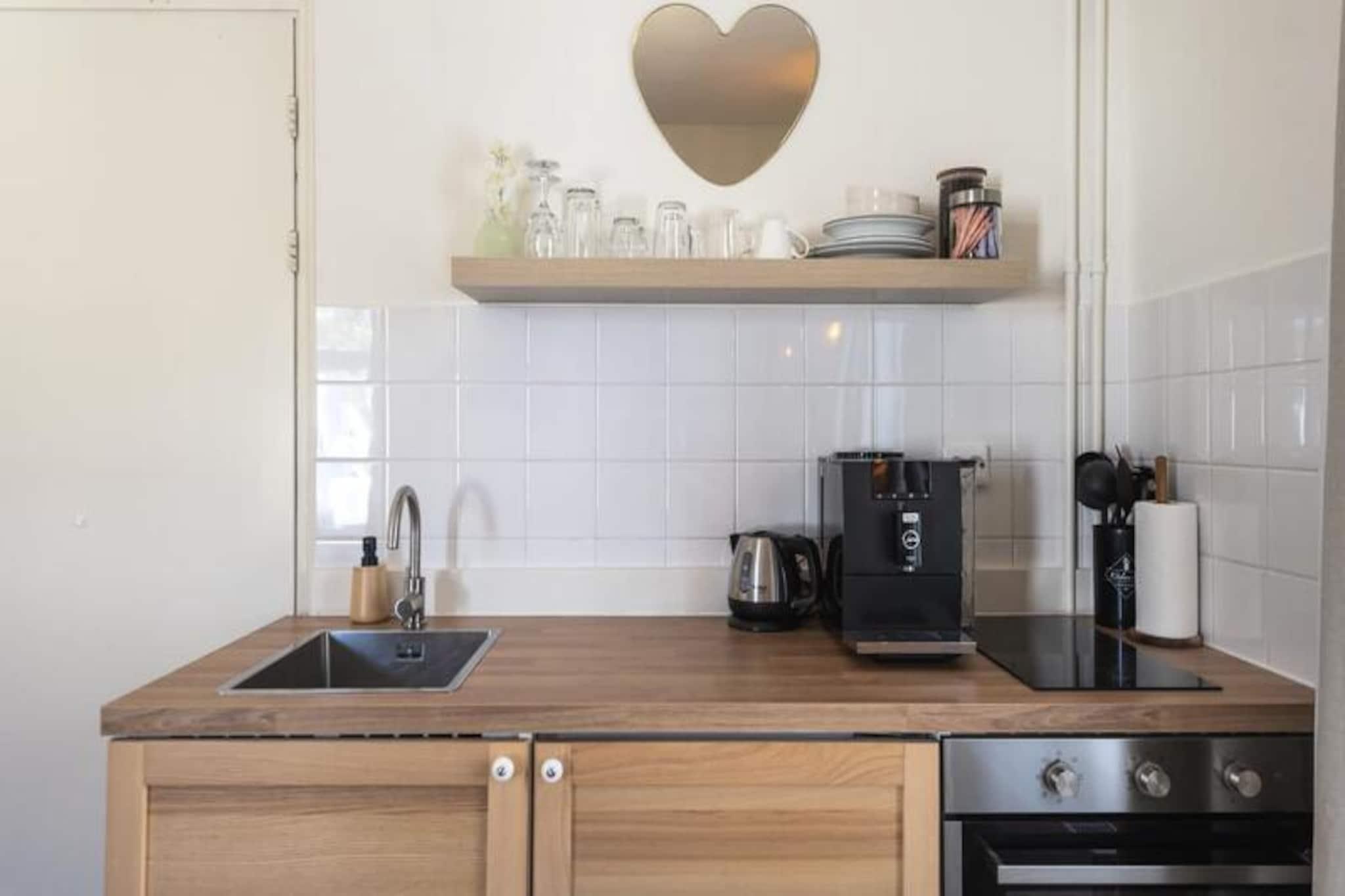Træd ind i kystcharmen i Studio 2 på Boutique Pension Bennekom i Zandvoort, hvor moderne komfort møder ro ved havet. Kun 5 minutters gang fra den gyldne sandstrand på Zandvoort-stranden tilbyder dette indbydende studio et roligt tilflugtssted for par eller ansvarlige voksne, der søger en fredelig ferie. Uanset om du er tiltrukket af de livlige strandbarer eller den stille skønhed i de nærliggende nationalparker, lover denne beliggenhed den perfekte balance mellem afslapning og eventyr. \n\nStudio 2 er omhyggeligt designet til at give alt det nødvendige for et behageligt ophold. Kingsize-sengen, som kan adskilles til to enkeltsenge med boxmadras, sikrer afslappende nætter, mens det private badeværelse og det italienskinspirerede brusebad tilbyder et strejf af luksus. Den hyggelige spiseplads og det fuldt udstyrede køkken, komplet med et elektrisk kogeplade med to blus, ovn, kaffemaskine, elkedel og køleskab, gør det nemt at tilberede måltider og snacks. Studioet, der ligger på første sal og er tilgængeligt via trapper, kombinerer bekvemmelighed med en indbydende atmosfære, ideelt til romantiske udflugter eller fredelige retræter. \n\nUd over studiet tilbyder Zandvoort en række attraktioner at udforske. Fra de pulserende strandklubber og restauranter til de fredfyldte vandre- og cykelstier i nationalparkerne De Waterleidingduinen og Kennemerduinen er der noget for enhver smag. For spændingssøgende er den nærliggende Circuit Park Zandvoort vært for spændende begivenheder som det historiske Grand Prix, mens surfere og kitesurfere kan prøve bølgerne for en spændende oplevelse. \n\nMed Zandvoort aan Zee togstation kun 15 minutters gang væk kan du nemt tage til Haarlem eller Amsterdam for en storbyferie, der kombinerer spændingen ved byudforskning med roen ved kysten. Uanset om du er her for at slappe af, udforske eller forkæle dig selv med udendørs eventyr, er Studio 2 din port til uforglemmelige minder i Zandvoort.