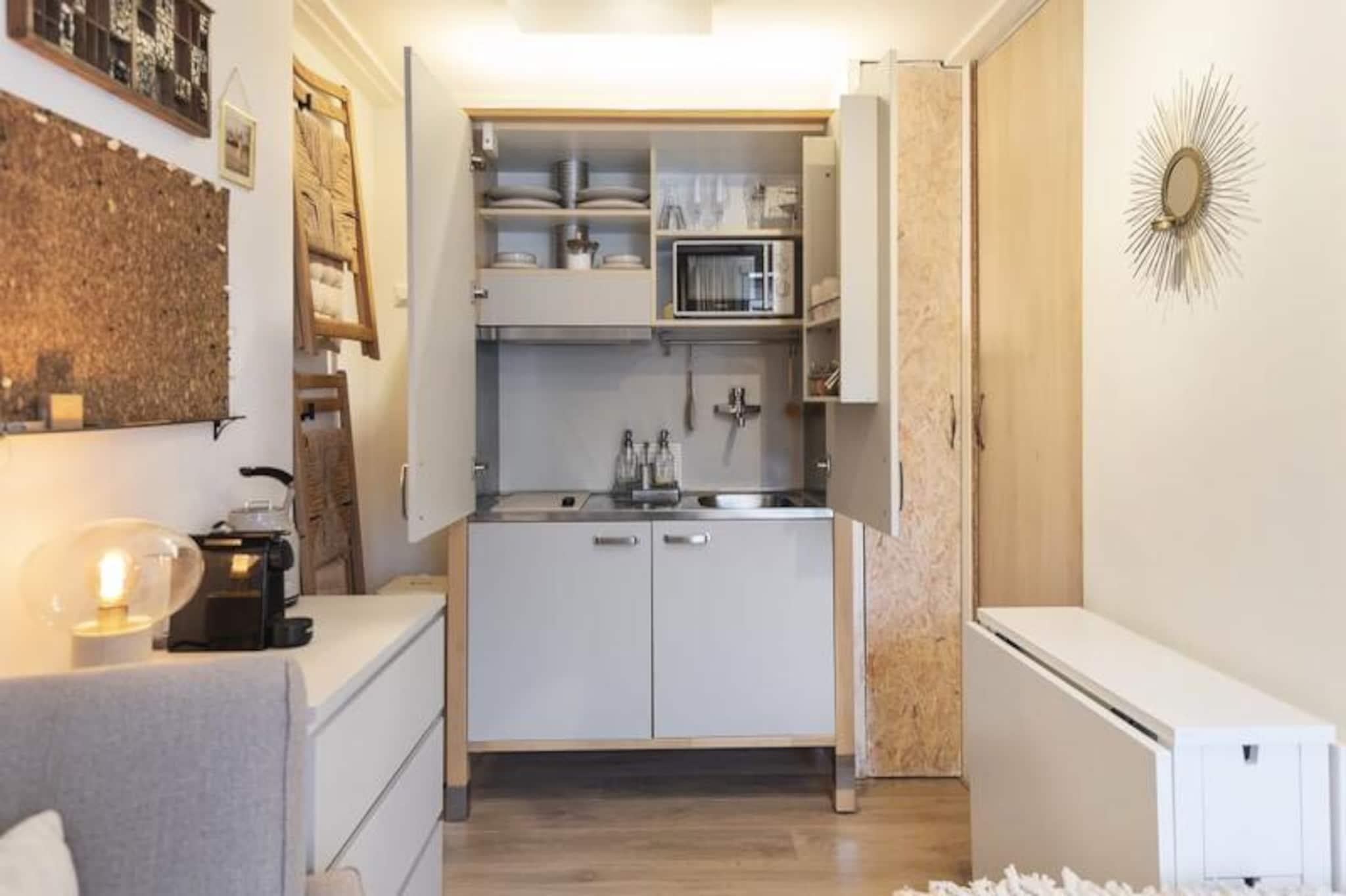 Træd ind i et fredfyldt kystnært tilflugtssted i hjertet af Zandvoort, hvor charmen ved et kystliv møder moderne komfort. Denne stilfulde studiolejlighed, badet i beroligende hvide og sandfarvede toner, tilbyder en rolig tilflugtssted kun få øjeblikke fra Nordsøens gyldne kyster. Uanset om du søger en fredelig ferie eller en aktiv strandferie, tilbyder denne ejendom den perfekte balance mellem afslapning og bekvemmelighed. Med sin egen indgang og hyggelige terrasse kan du nyde rolige morgener med en kop kaffe eller slappe af efter en dag med at udforske de pulserende omgivelser. \n\nIndenfor er det 19 m² store studio omhyggeligt designet til en eller to rejsende. En blød queensize-seng indbyder til afslappende nætter, mens et par komfortable lænestole og et spisebord skaber et indbydende rum til at slappe af eller planlægge dine eventyr. Det moderne badeværelse har bruser, håndvask og toilet, og tekøkkenet er udstyret med køleskab og mikrobølgeovn til tilberedning af lette måltider. Aircondition og en elektrisk ventilator sikrer en behagelig atmosfære året rundt, mens Wi-Fi holder dig forbundet under hele dit ophold. \n\nStudiolejligheden ligger på en fredelig sidegade i Zandvoorts historiske centrum, kun få skridt fra stranden, den livlige promenade og en række strandklubber, barer og restauranter. Naturentusiaster vil elske nærheden til nationalparkerne Waterleidingduinen og Kennemerduinen, der tilbyder naturskønne vandre- og cykelstier. For spændingssøgende ligger Circuit Park Zandvoort i nærheden, hvor der afholdes motorsportsbegivenheder og aktiviteter. \n\nMed nem adgang til Amsterdam og Haarlem via offentlig transport kan du nemt kombinere en storbyferie med en afslappende ferie ved havet. Uanset om du er her for at nyde solen, udforske naturen eller opleve den pulserende lokale kultur, er denne studiolejlighed din ideelle base for et uforglemmeligt Zandvoort-eventyr.