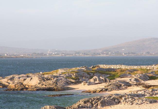 The views from this holiday home really capture the Connemara landscape of small fields, stone walls and the sea beyond.