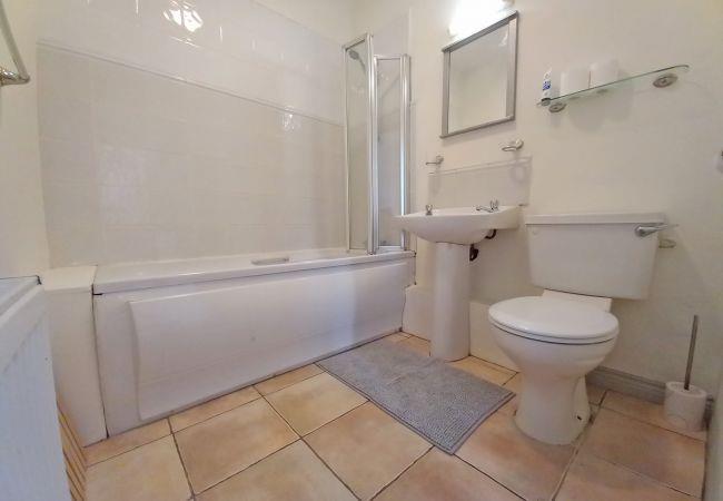 - Family bathroom with bath and overhead shower