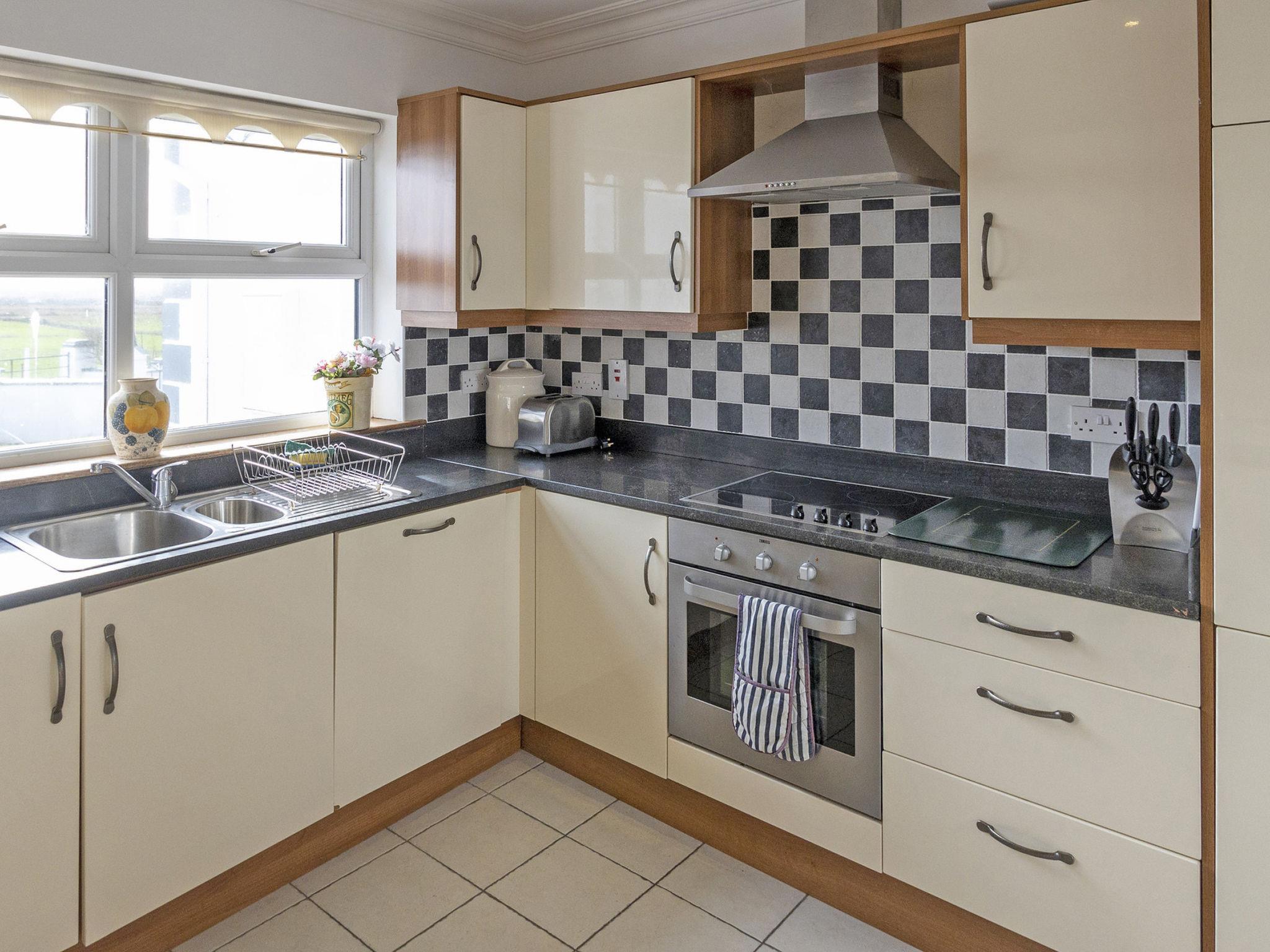 "Matthews Cottage Doonbeg", 4-room house 90 m2. Object suitable for 6 adults. Living room. 1 room with 1 double bed. 1 room with 1 double bed. 1 room with 2 beds. Kitchen (oven, dishwasher, toaster, kettle, microwave, freezer). Shower/WC. Facilities: washing machine, iron. Internet (WiFi, free). Please note: non-smokers only. Smoke alarm.