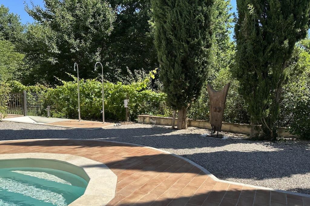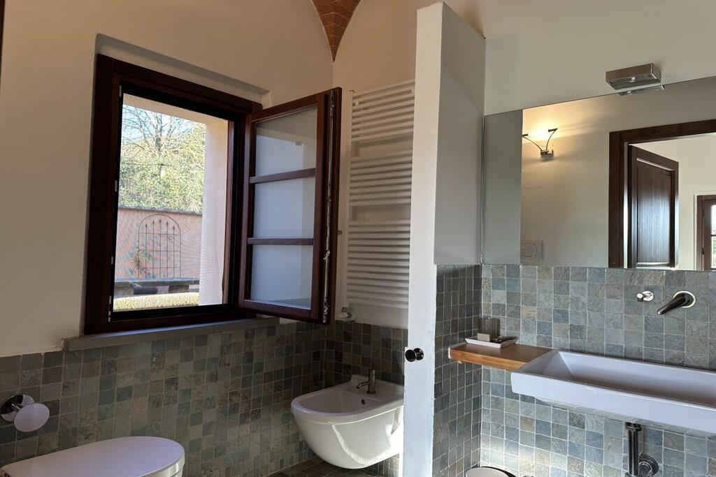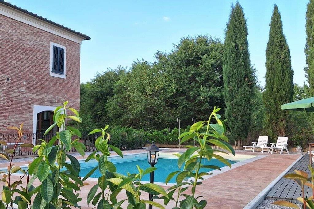 Lejligheden ligger i en nyrestaureret aristokratisk ejendom fra det 18. århundrede, der engang husede et teglværk. Fra den store have (med en urtelabyrint i etruskisk stil) og solterrassen ved saltvandspoolen kan man se ud over vinmarkerne mod Montepulciano. En pergola, to gårdhaver og en overdækket loggia tilbyder fred og skygge. Morgenmaden serveres i "Kuppelsalen", den omhyggeligt restaurerede tidligere stald, hvor vores sommerkoncerter også finder sted. Børnene vil nyde en lang rutsjebane ned til vinmarken og den store græsplæne til deres lege. Vi har i alt 5 ferielejligheder og 1 dobbeltværelse, som også kan bookes samlet efter anmodning.