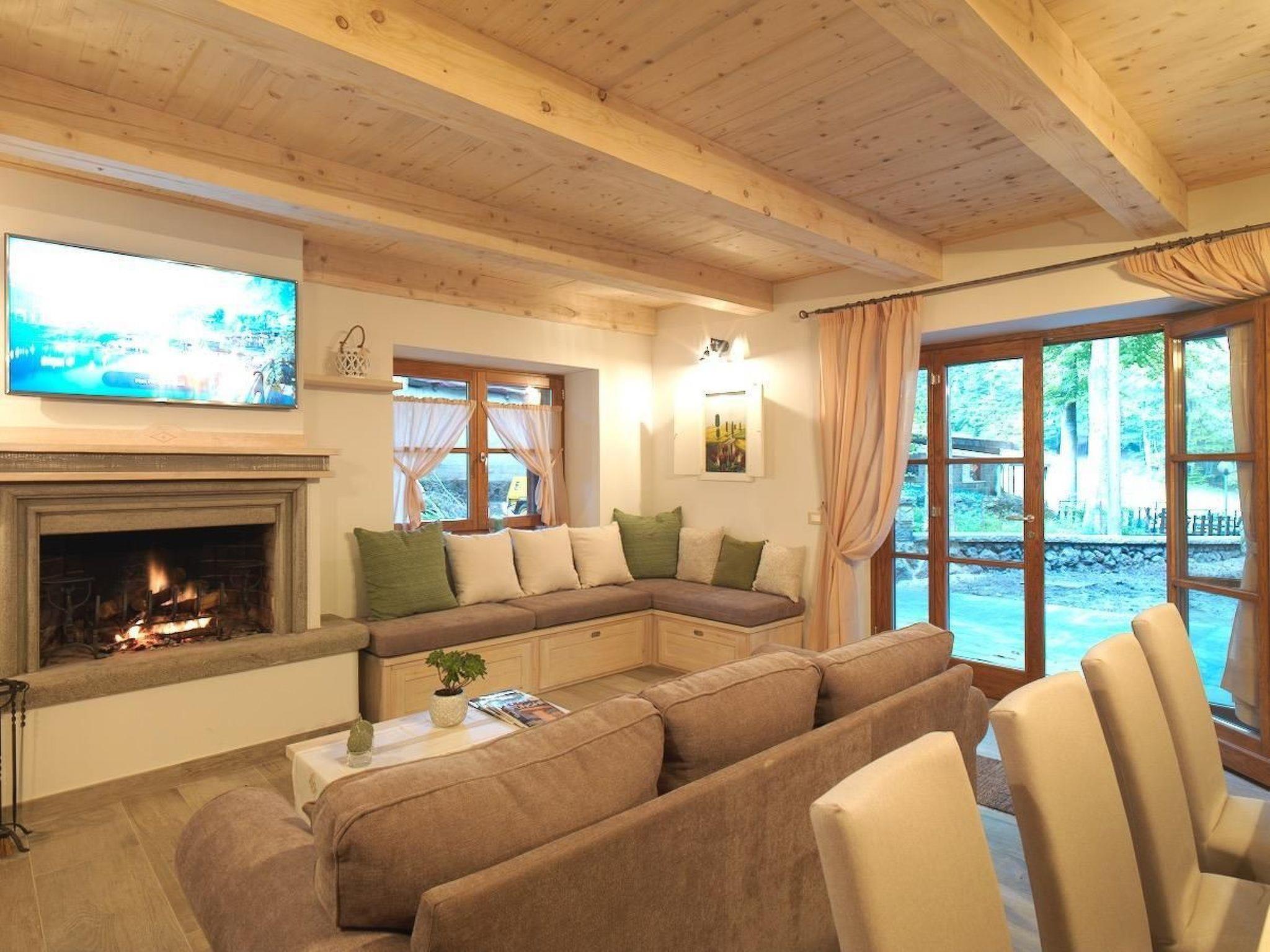 Living room amenities: Living room with fireplace, lounge sofa, large table for cozy dinners, chic LED satellite TV, Dolby surround sound and DVD, books and games