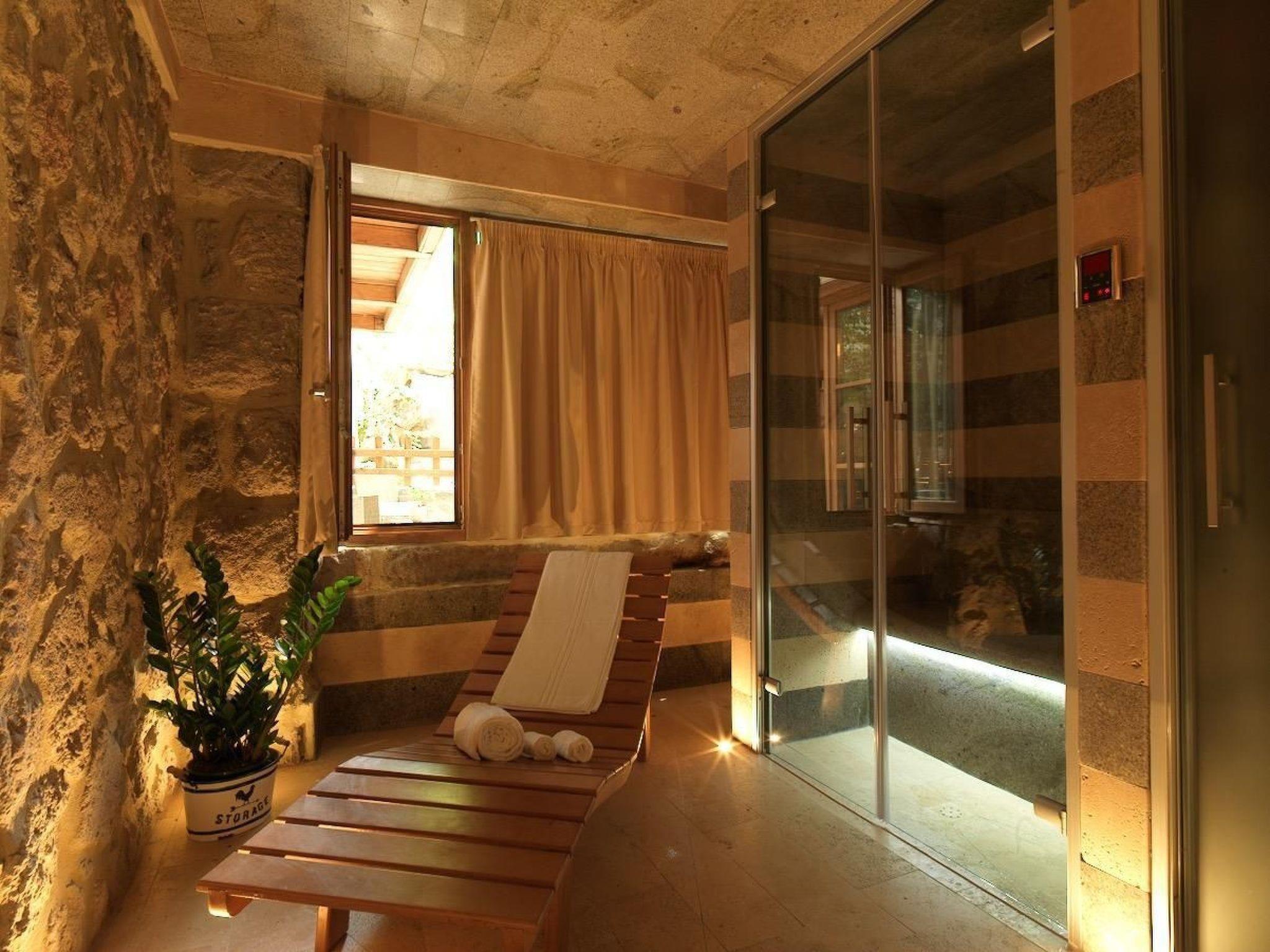 Bedroom 1: The Cantore Suite is located on the first floor and has an en-suite bathroom, high ceilings, and direct access to the sun terrace from the door window.