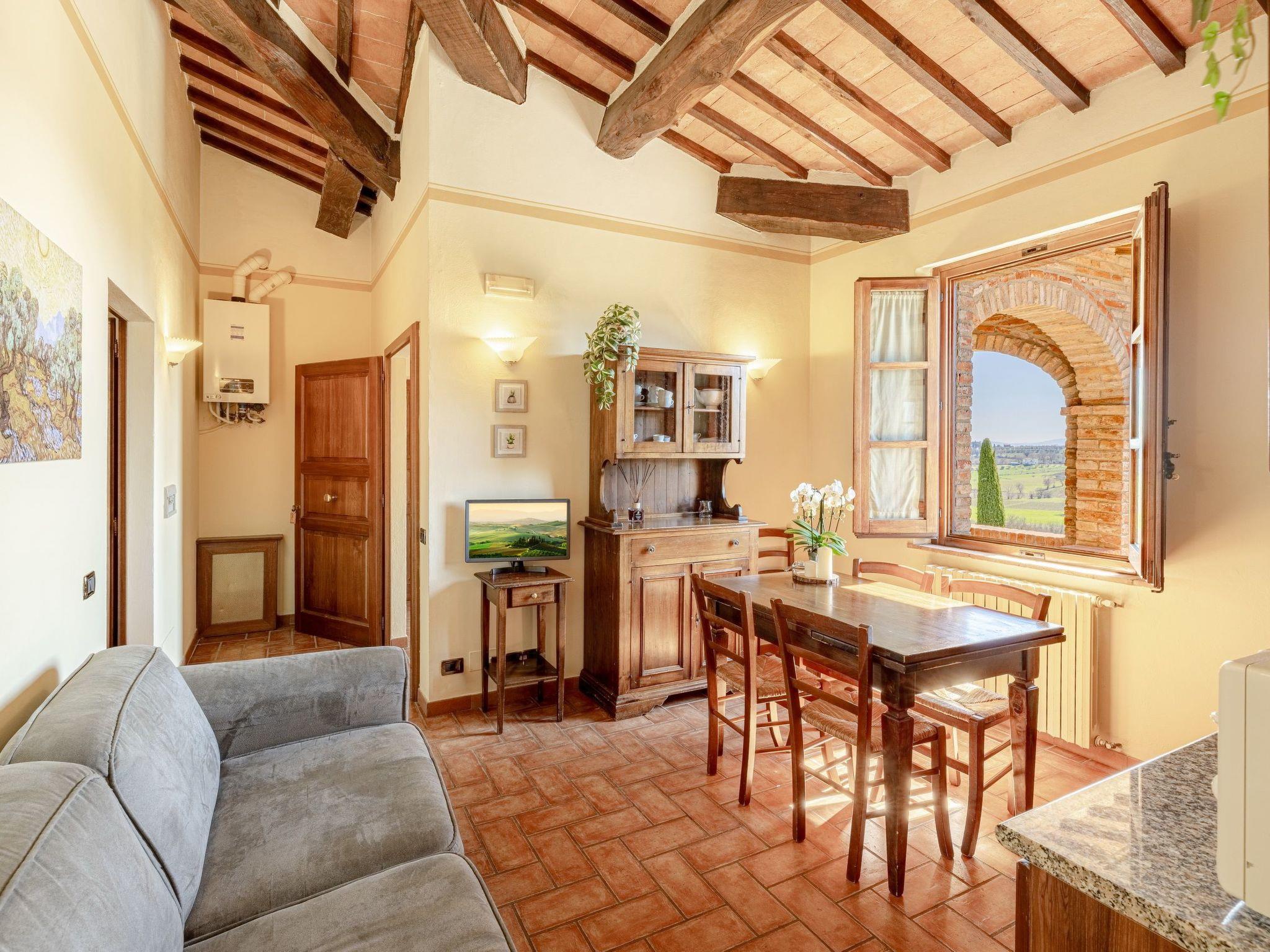 The flat enjoys a breathtaking view of the surrounding countryside. Bright and cosy, it can accommodate up to 6 persons.