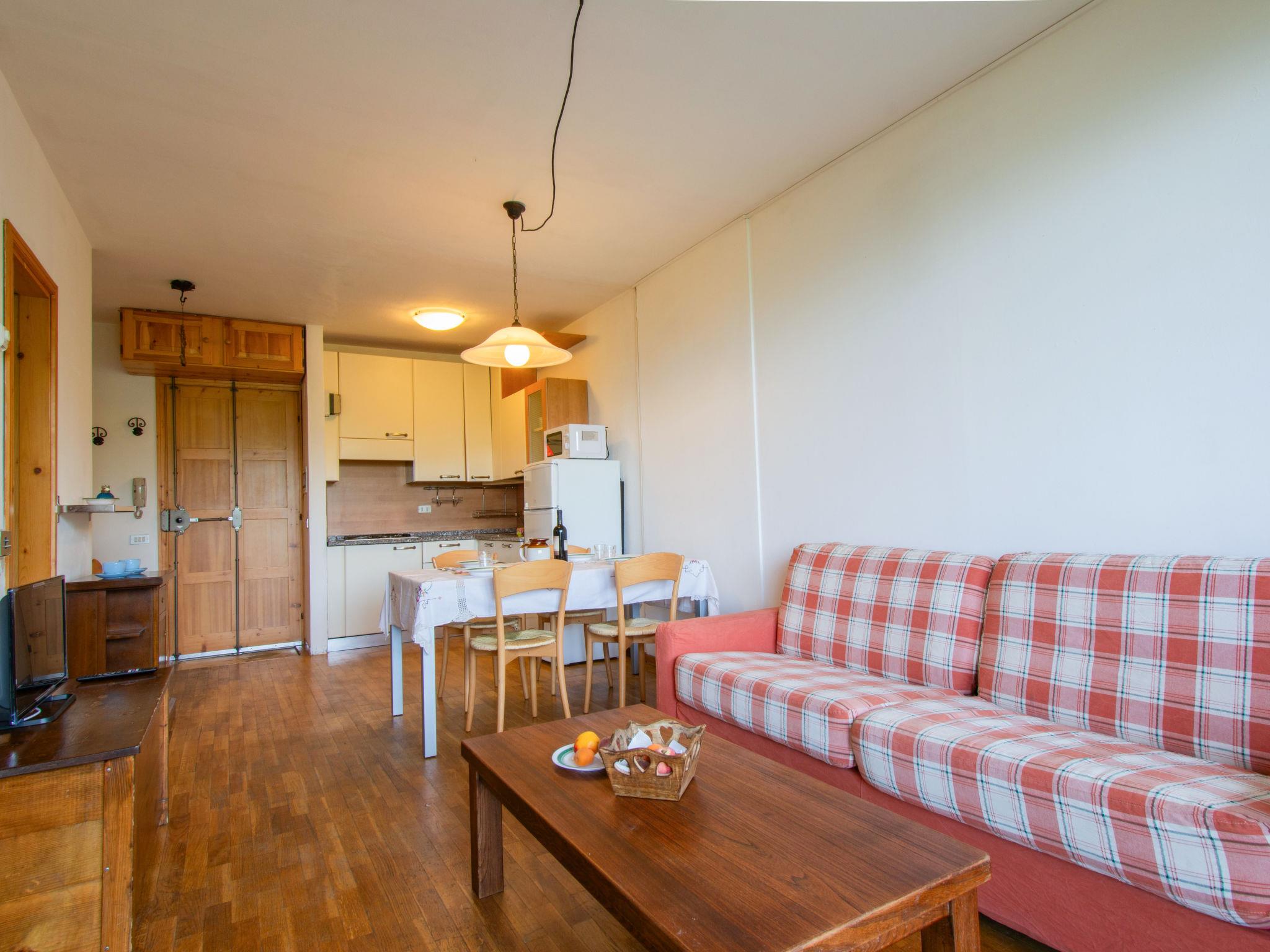 "Bravone", 3-room apartment 55 m2. Cosy and wooden furniture furnishings: living/dining room with dining table and digital TV. Exit to the terrace. 1 double bedroom with panoramic window with shower/bidet/WC with 1 x 2 bunk beds. Kitchen (4 gas rings, toaster, kettle, microwave). Shower/bidet/WC. Wooden floors. Large terrace. Terrace furniture. Panoramic view of the ski run. Facilities: Internet (WiFi, free). Please note: non-smokers only. Maximum 1 pet/ dog allowed. Smoke alarm, fire extinguisher. IT047023C26VIF7Z56