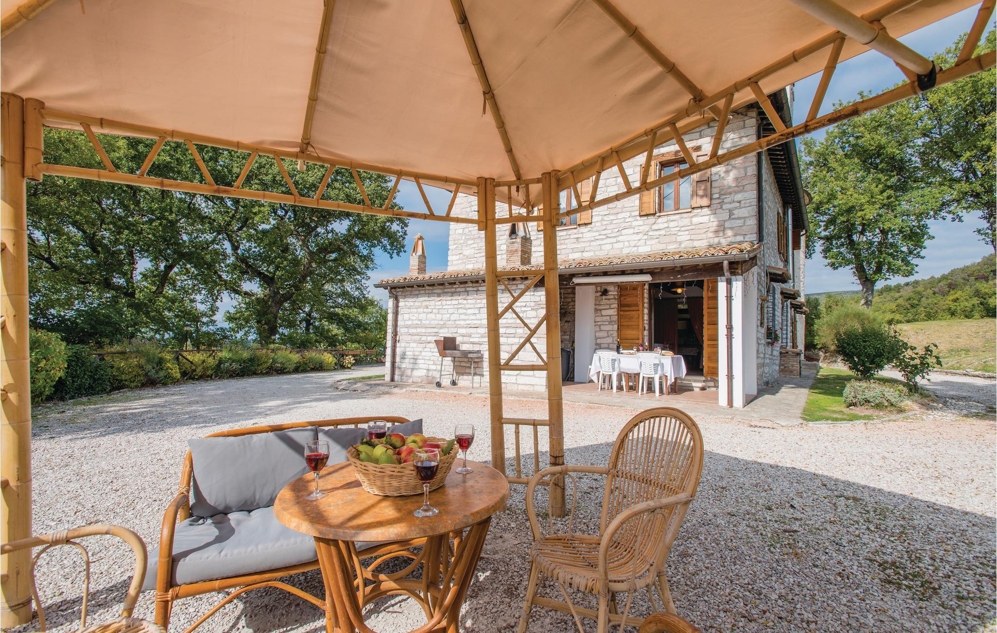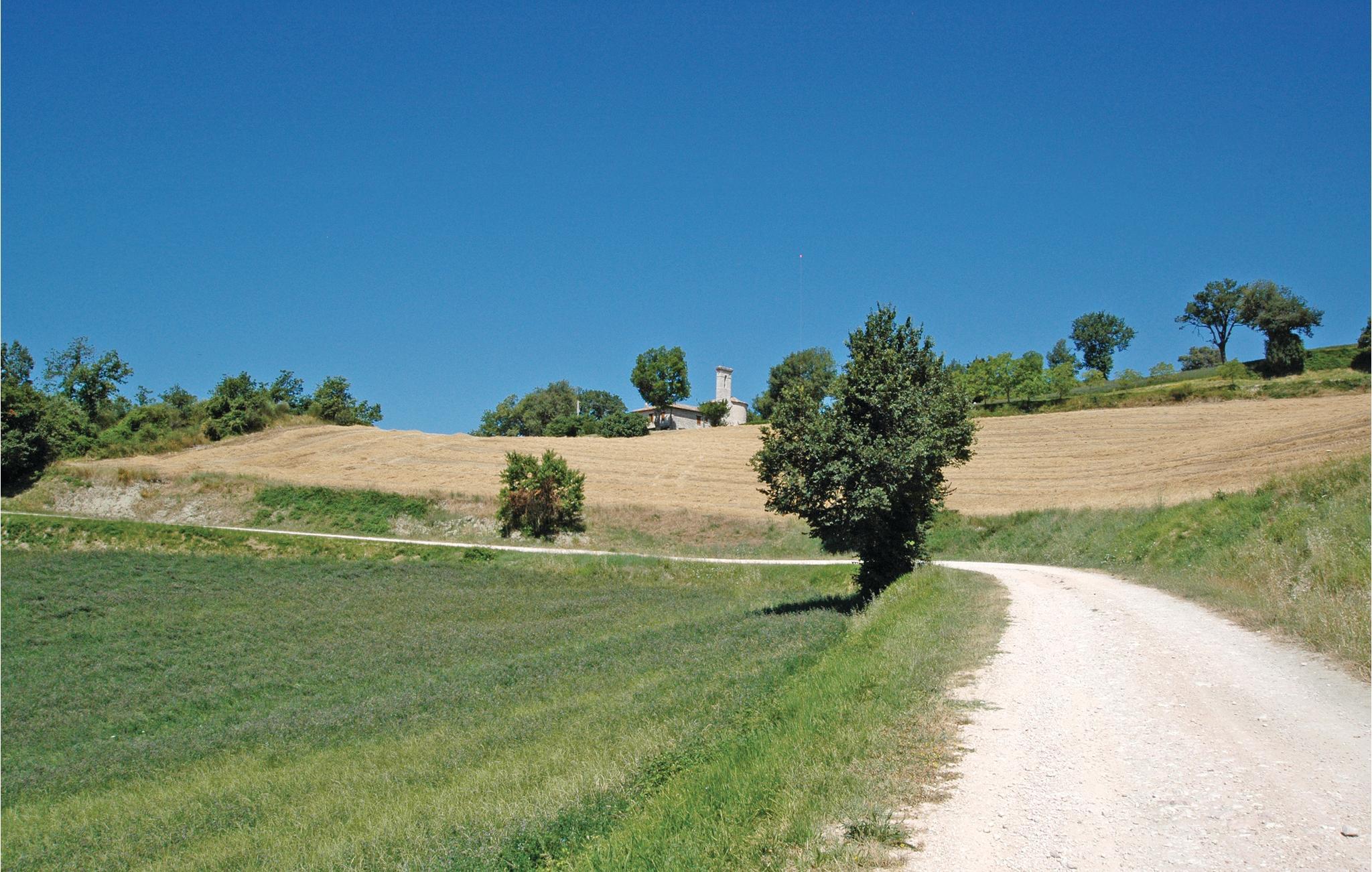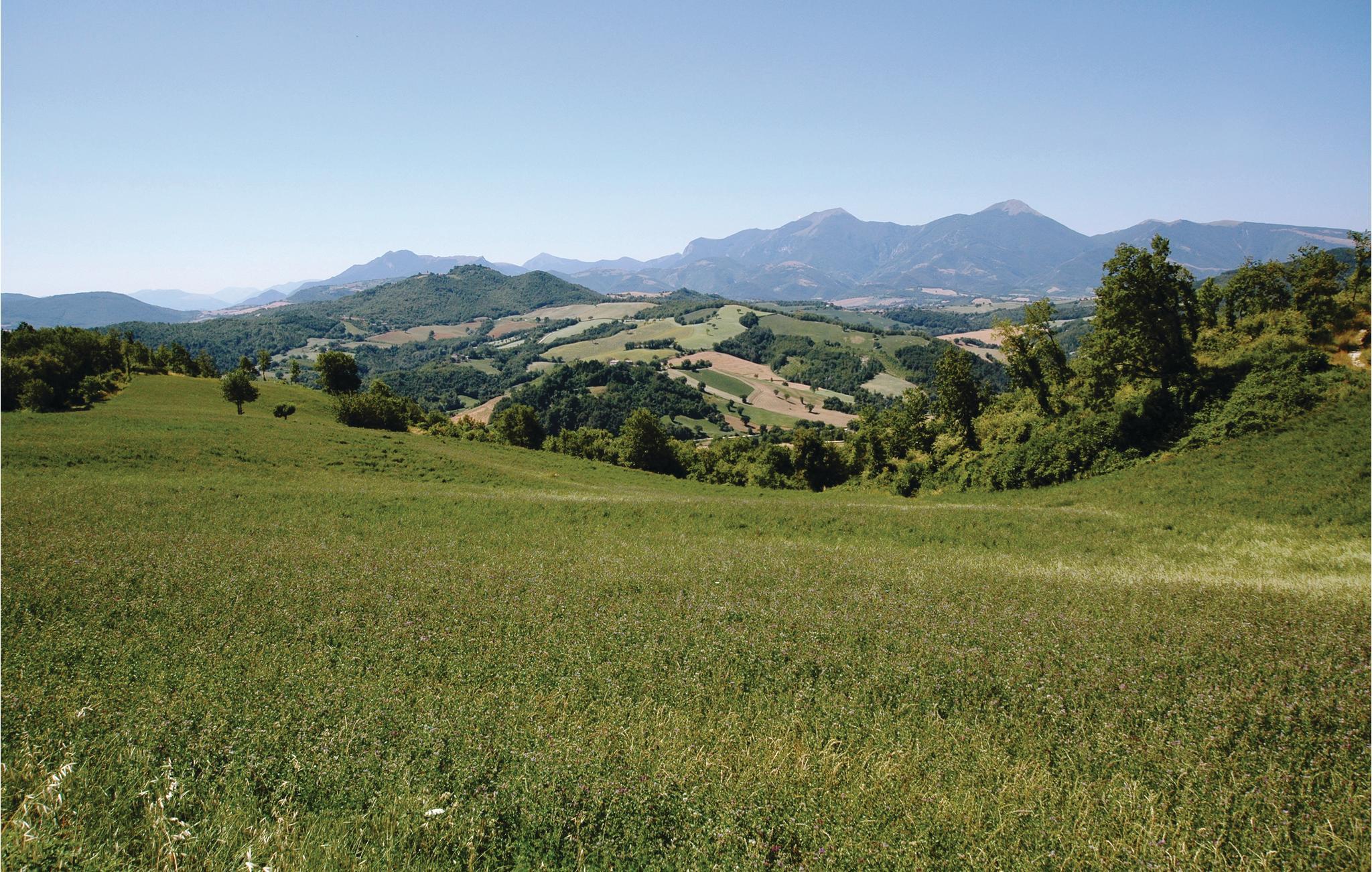 Den tidligere præstegård har egen kirke og ligger på en bakke der giver gæsterne en unik udsigt over bjergene (Monte Nerone 1525m, Monte Catria 1700m) og dalene. Her har du en masse privatliv - ideel til større familier og grupper. Det renoverede hus har bevaret sin landlige charme; træbjælker og originale fliser sikrer en varm, hyggelig atmosfære.
