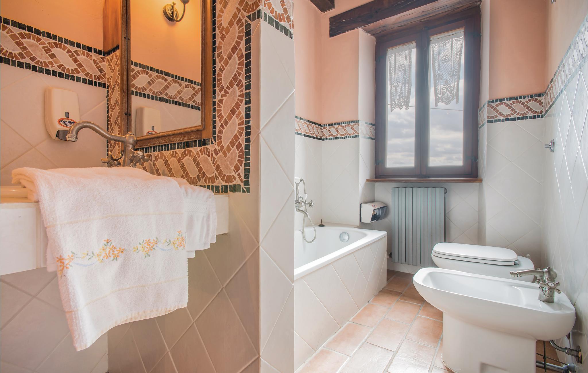 I stueetagen finder du den rustikke spisestue med udgang til den overdækkede terrasse, et professionelt køkken, opholdsstue og toilet; de seks soveværelser med to badeværelser er på 1. sal. Det private badeområde (3 x 6 m pool) med liggestole, boldspil og legetøj er tilgængeligt på ejendommen. Du kan tage vidunderlige vandreture direkte fra huset; Vandre eller cykle i den nærliggende Furlo Nature Park, hvor du kan få øje på vilde heste og ørne i bjergene!