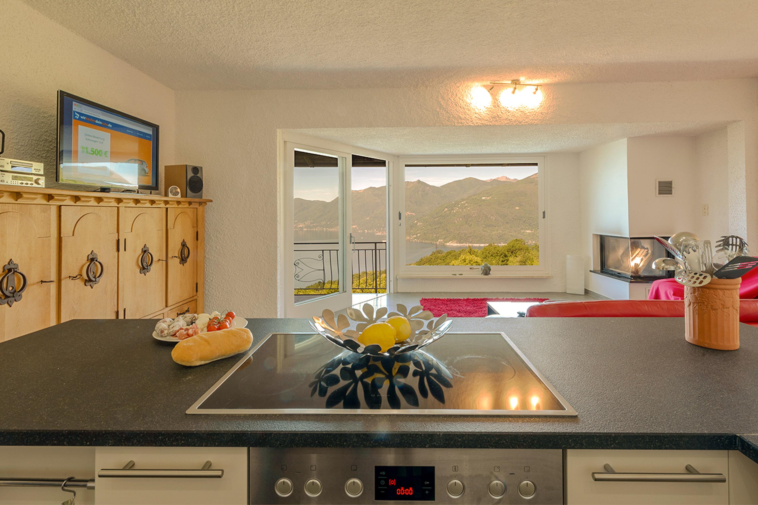 Die ebenerdige Wohnung erstreckt sich über 95 Quadratmeter und bietet zwei Schlafzimmer mit Doppelbett und Kleiderschrank, sowie zwei Duschbäder, von denen eines etwas kleiner ist. Die Küche, der Wohn- und Essbereich sind großzügig gestaltet und laden zum Verweilen ein. Das große Panoramafenster im Wohnzimmer und der Kamin mit Thermostat und Gas-Heizung, deren Kosten in der Heizperiode im Mietpreis inbegriffen sind, sorgen für gemütliche Stunden mit traumhaftem Ausblick. Genießen Sie eine Tasse Kaffee aus dem Saeco Kaffee-Vollautomat auf den bequemen Ledersofas des hochwertig eingerichteten Wohnzimmers. Vom großen Balkon aus liegt der See ausgebreitet vor Ihnen, und der schöne Außen-Kamin lädt zum Grillen ein. Der große Sitz- und Liegebereich um den Gemeinschaftspool lädt zum Relaxen und Verweilen ein. Diese Wohnung ist ideal für Singles, Paare und Familien mit großen Kindern geeignet und verspricht eine unvergesslich schöne Zeit am Lago Maggiore.