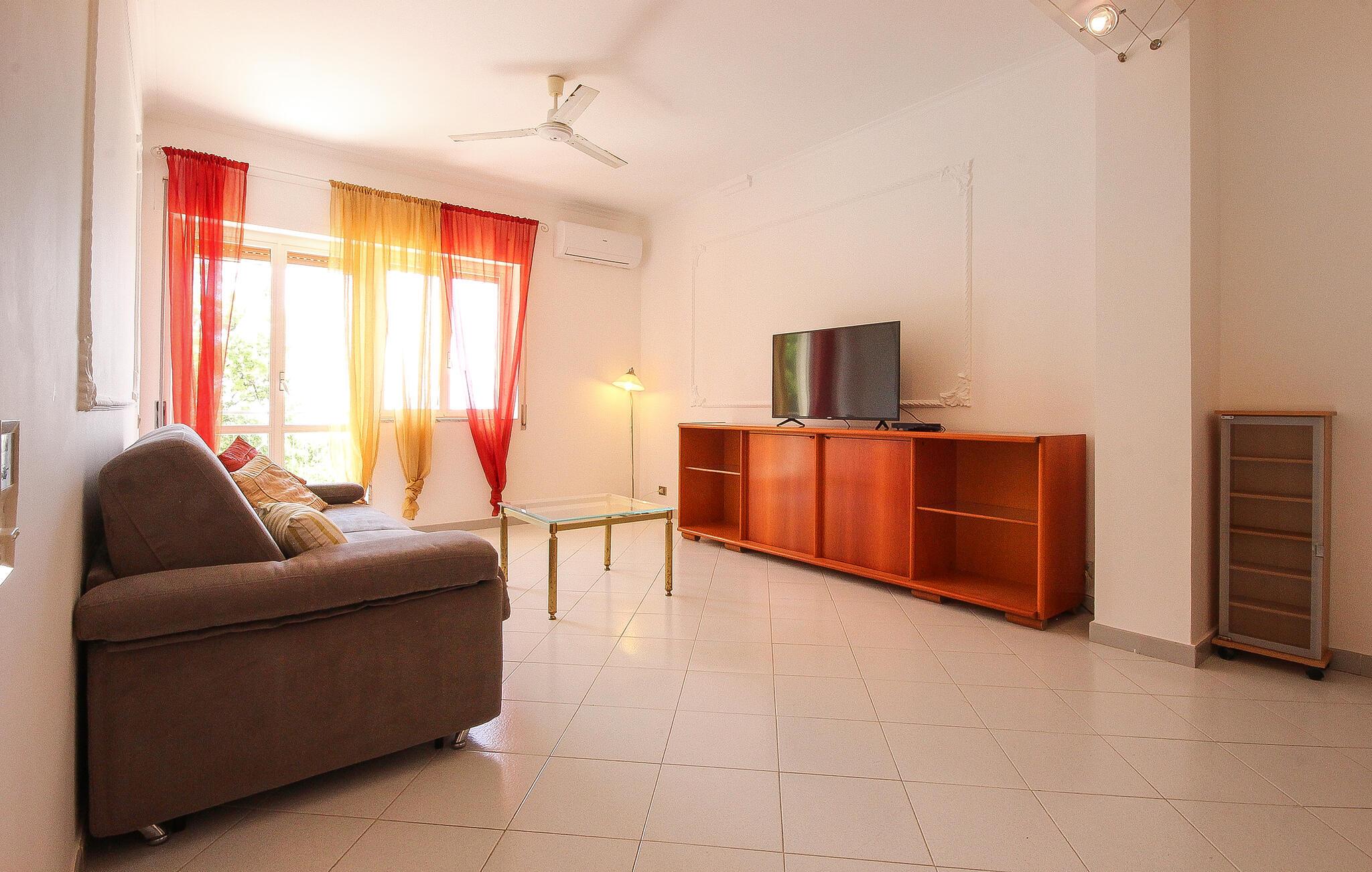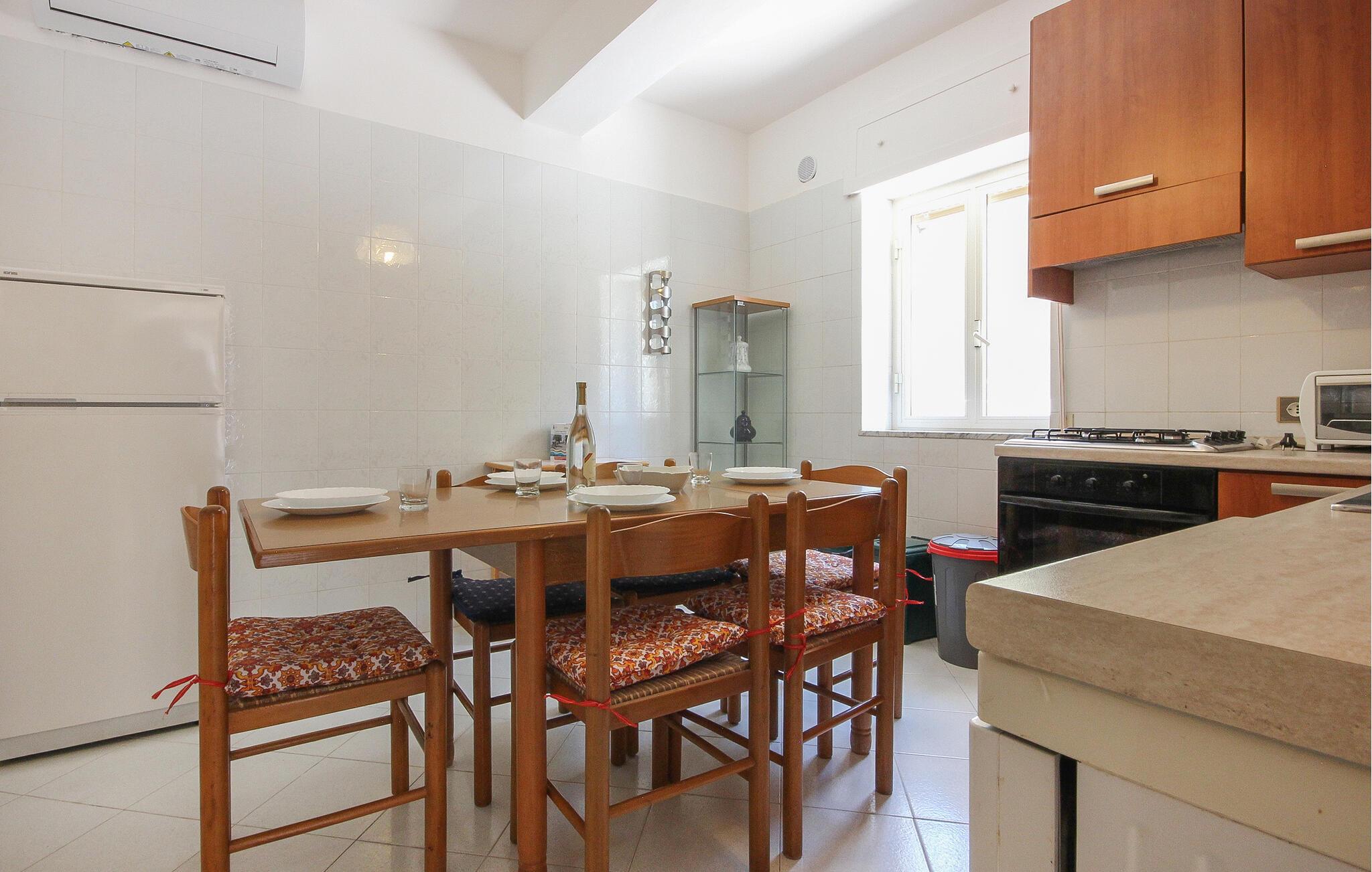 Denne lyse og rummelige ferielejlighed er ideelt placeret til en spontan og alsidig ferie. Tilbered lækre retter og planlæg jeres aktiviteter ved spisebordet. Efter en lang dag kan I slappe af på sofaen, streame en film eller slappe af med et brætspil.