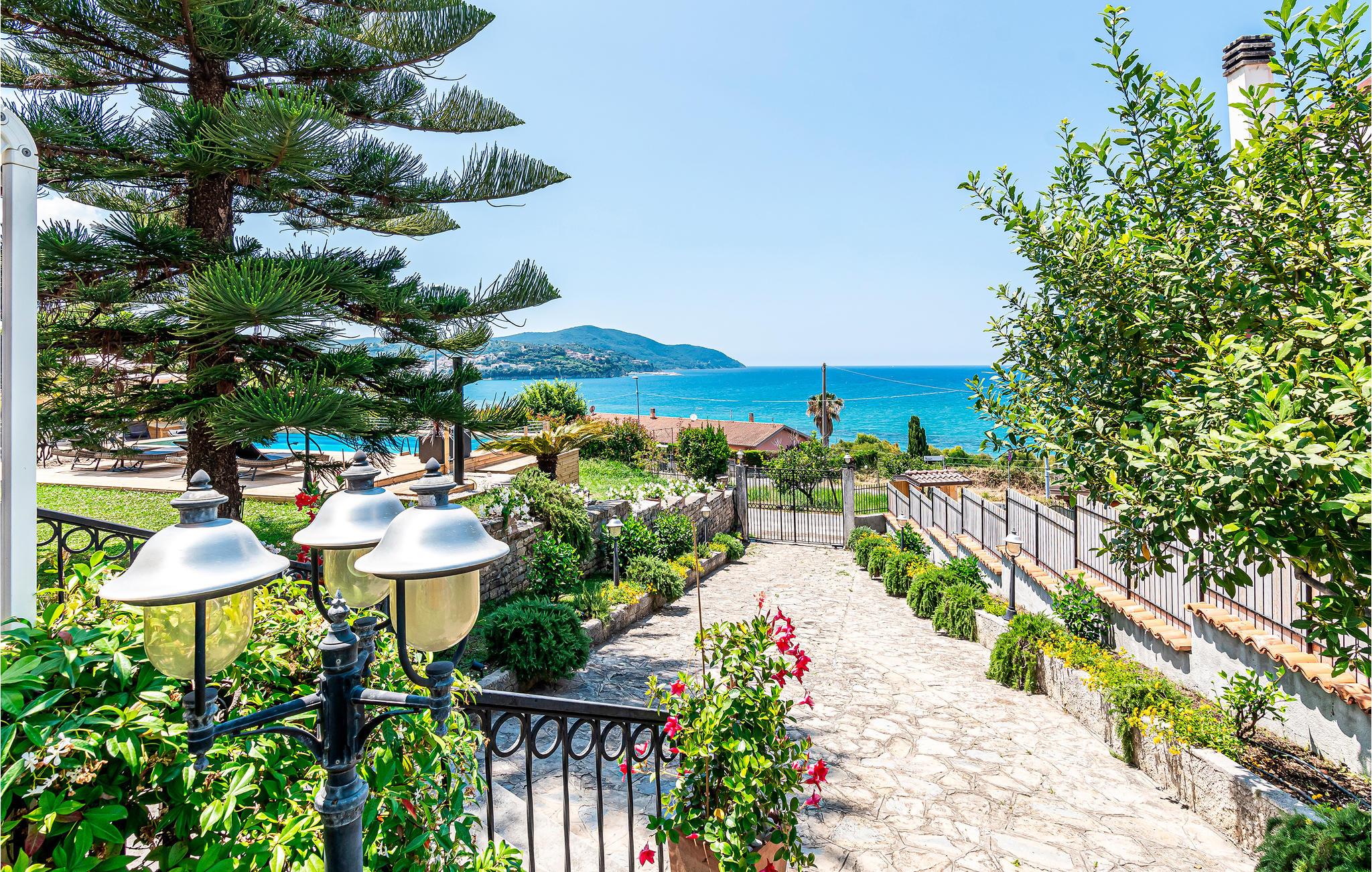 Bo i dette rummelige stenhus med privat udendørs pool og smuk udsigt tæt på stranden. Huset får sin charme fra hesteskoformede detaljer og kreativ indretning med et moderne, farverigt interiør. Med 4 soveværelser og 4 badeværelser er der masser af plads til to familier, der rejser sammen. Mens I laver mad med et glas vin i det farverige køkken, kan børnene slippe dampen ud i aktivitetsrummet. Måske spiller I bordfodbold? Tilbring en sjov tid ved poolen. Børnene vil helt sikkert kunne lide den skønne have. Nyd kolde drinks på terrassen. I kan også spille kort her. Solbad på de skønne strande ved Cilento-kysten og forkæl jer selv i det azurblå Tyrrhenske Hav. Nyd et glas limoncello efter middagen.