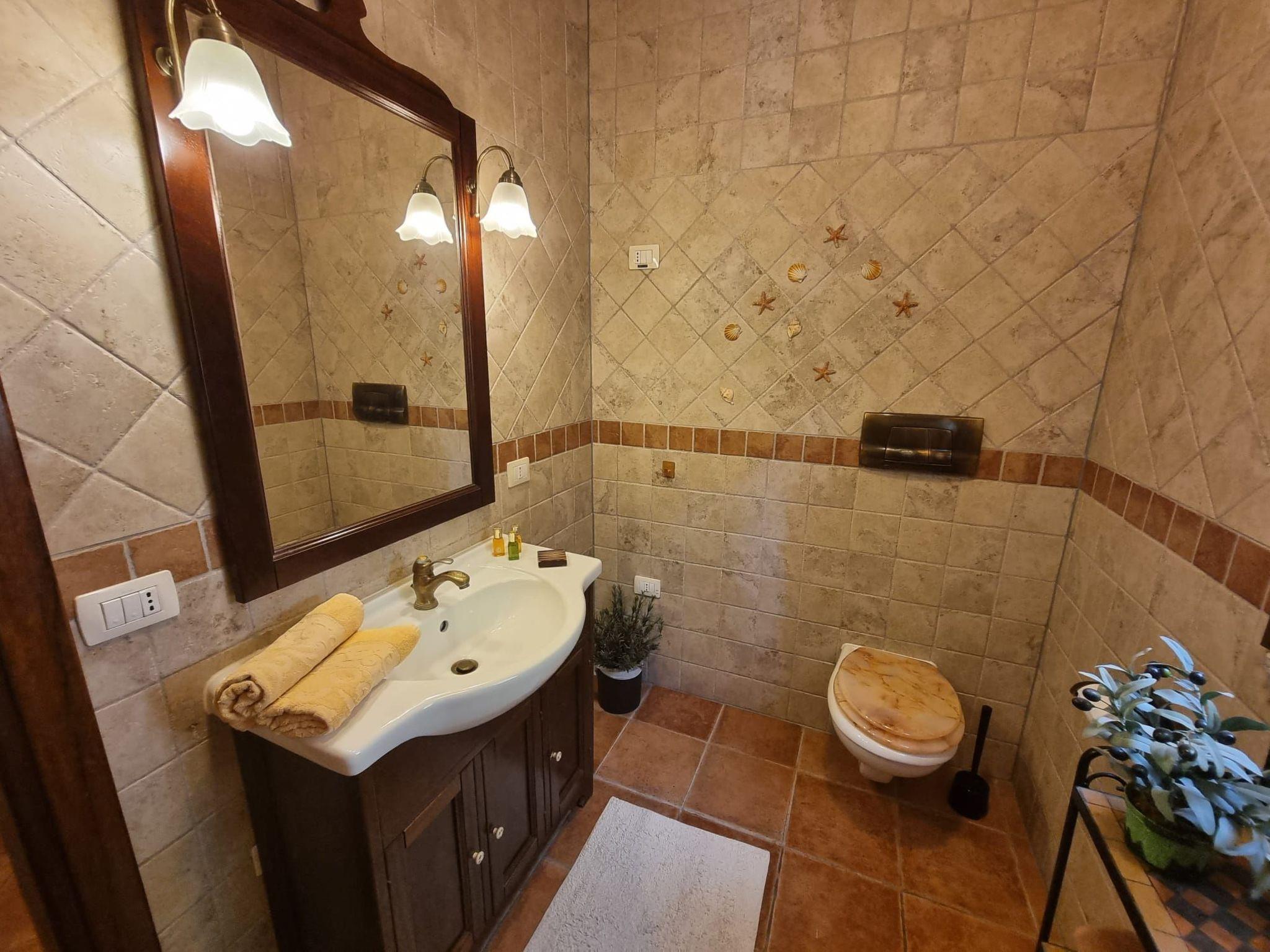 Jasmine, olive trees, lemon trees, rosemary, oregano, a cactus garden, wild vines, bougainvillea and a few potted plants provide the green eye. Recently, you can also use the outdoor barbecue and enjoy a cosy barbecue with your family. Sit on the terrace, breathe in the scent of jasmine and look out directly over the bay and the Campagna. Shower off the sand after a day at the beach in the natural stone outdoor shower with warm water, of course.