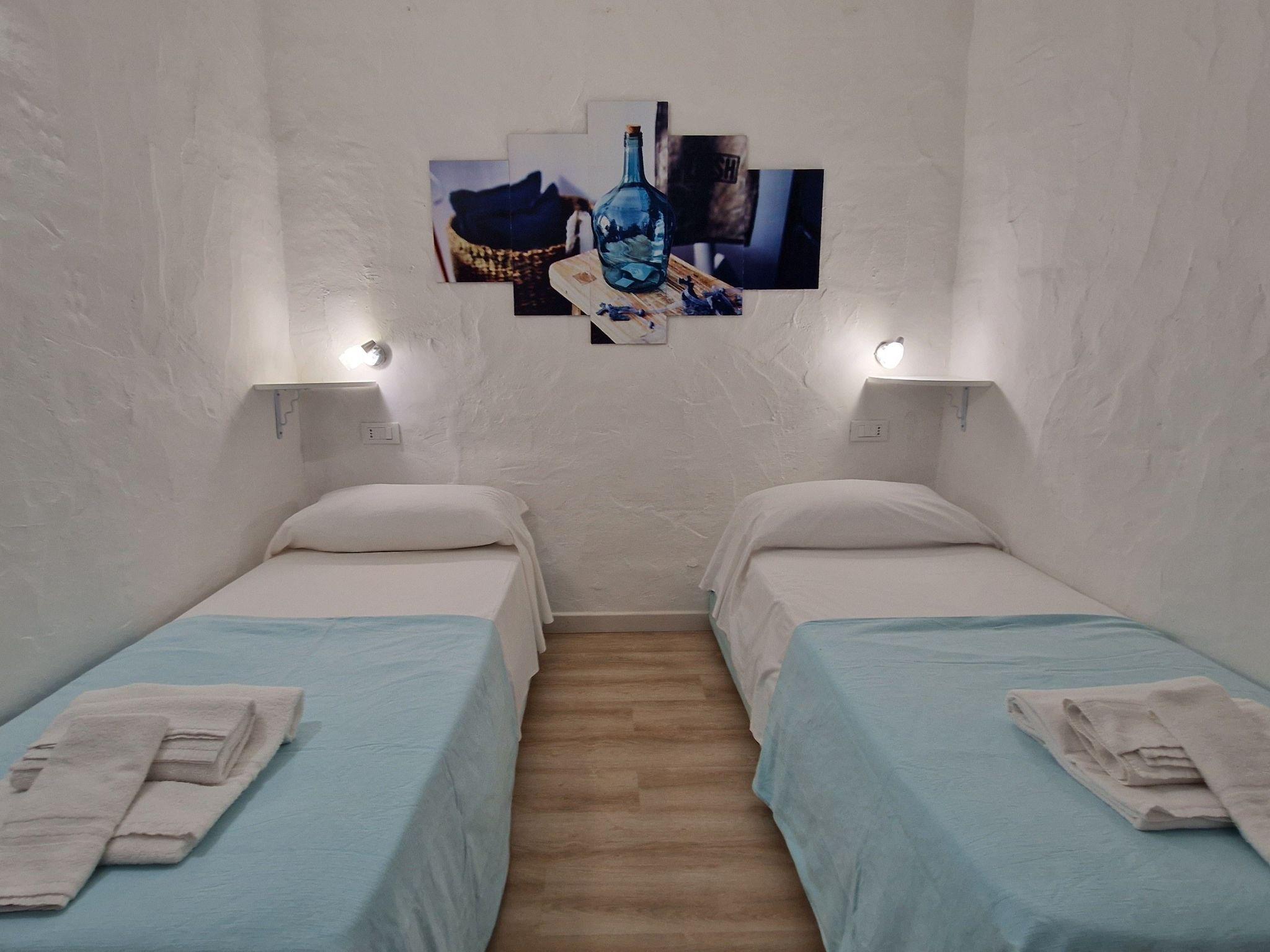 Casa Tre Fratelli is a comfortable and bright flat located in the heart of Capo Coda Cavallo, San Teodoro. This marvellous seafront property offers an unparalleled view of the crystal-clear blue of the bay, providing an unforgettable holiday experience. The living area is bright and welcoming, with a large, well-equipped kitchenette, furnishings with Mediterranean charm and a double sofa bed. The sleeping area consists of a comfortable double bedroom, a second bedroom with two single beds and a further bedroom with bunk beds. Ideal for families or groups of friends. The bathroom is complete, equipped with shower and bidet. There is a further bathroom inside the double bedroom. The large panoramic terrace is perfect for outdoor dining or relaxing moments admiring the sea. Equipped with every comfort such as air conditioning, Wi-Fi and a shared swimming pool, Casa Aloe is the ideal starting point for visiting San Teodoro and its surroundings. The flat is located in a privileged position, a stone's throw from the most enchanting beaches in Sardinia, such as Cala Brandinchi, Lu Impostu and the beach of Capo Coda Cavallo. Ideal for those who love the sea, water sports and the unspoilt nature of the Tavolara marine reserve.