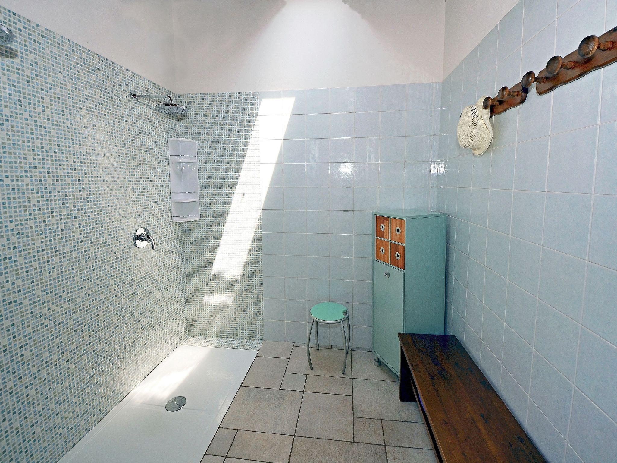 1 Shower by the Pool surrounded by green hedges, in addition to the 5 Bathrooms;