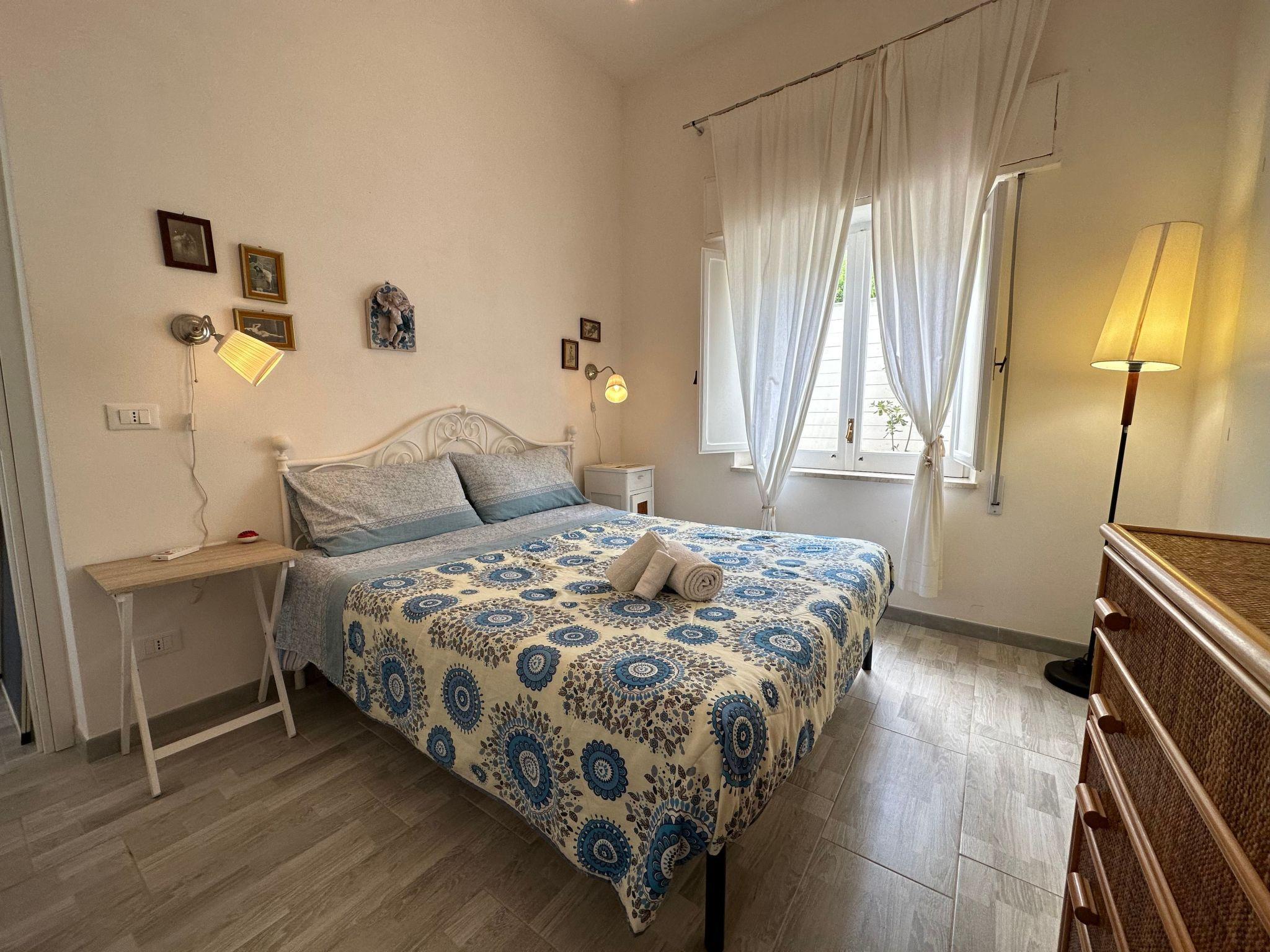 At the entrance, a spacious veranda welcomes guests and introduces them to the living area, the heart of the house, from which three double bedrooms and a main bathroom branch off. One of the rooms has a private bathroom, offering greater comfort and privacy. The interiors are bright, well-distributed and carefully furnished, designed to ensure a relaxing stay.