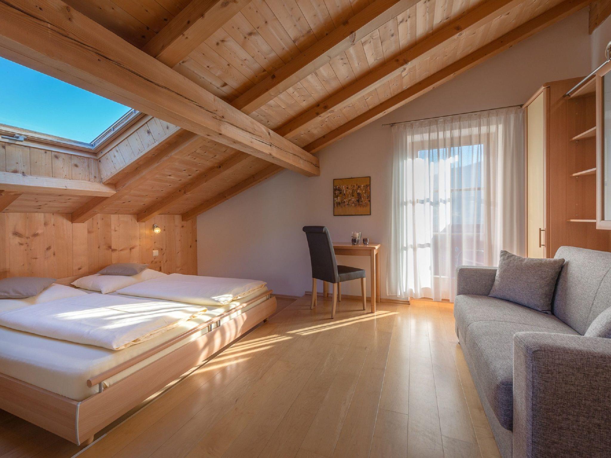 In our new holiday home with large common room and fireplace, 5 spacious, well soundproofed residential units consisting of 1-2 bedrooms, 1-2 bathrooms, living room-kitchen you live very quiet, in a sunny location with plenty of space to relax on large balconies and terraces.the holiday home consists of 2 floors and additionally the garage on the lowest floor.the furnishings of the house are modern and contemporary with lots of wood, metal and glass and the residential units are equipped with large panoramic windows where you can enjoy the panoramic view directly from your bedroom.The kitchens in the individual accommodation units are very well equipped with hob, toaster, coffee machine, kettle, microwave and oven, and the bathrooms are equipped with shower (rain shower), WC, bidet, washbasin and a cosy common room with a beautiful fireplace and large garden where you can meet and relax with your friends and acquaintances, have breakfast or dinner together. And if you prefer some peace and quiet from time to time, each of the 5 apartments has its own living room in addition to the room.in the flats you will find free wifi, satellite TV and safe.in the house there are 6 spacious, closed garage parking spaces for cars, also with charging station for e-cars, lockable storage room for bicycles with maintenance room and charging stations for e-bikes and ski room.the total price also includes the Mobilcard Südtirol, with this you can use all public buses, trains and some cable cars throughout South Tyrol free of charge.