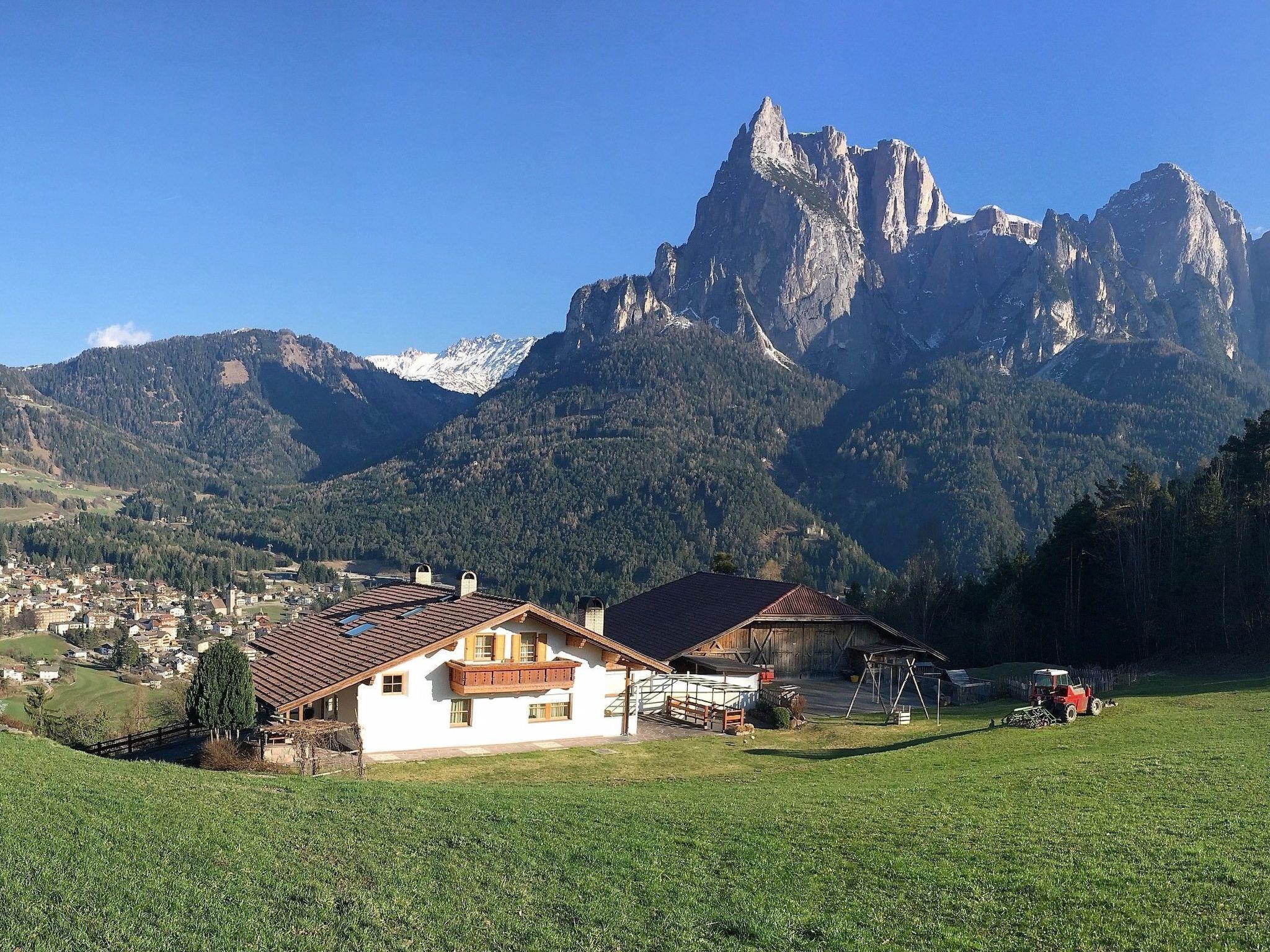 Our new, beautifully furnished holiday flats are located in the middle of meadows and have a fantastic view of the village of Siusi allo Sciliar and the mountains of the Dolomites.starting directly from the holiday home you can go on beautiful hikes, start rides with your bike, swimming, horse riding, paragliding, mountaineering and much more.the centre of Siusi is 1 km away where there are cafes, bars, restaurants, shops, nature park house.in winter skiing on the nearby Alpe di Siusi, Val Gardena, and the famous Sellaronda. All this can be reached by cable car from Siusi and you are immediately in the middle of the 70 lifts of the sunny ski area Alpe di Siusi - Val Gardena with ski slopes of all levels of difficulty, cross-country skiing on the Alpe di Siusi with 60 km of cross-country trails and also for hikers this area is beautiful in winter with many groomed hiking trails.In spring, summer and autumn, the main town of Siusi, the Alpe di Siusi, the highest alpine pasture in Europe with an area of 70 km2, the villages of Castelrotto, Fiè and Tires with the Catinaccio are a wonderful hiking area with easy and more difficult hikes with wonderful viewpoints, flowering alpine meadows and wild animals in the great outdoors.