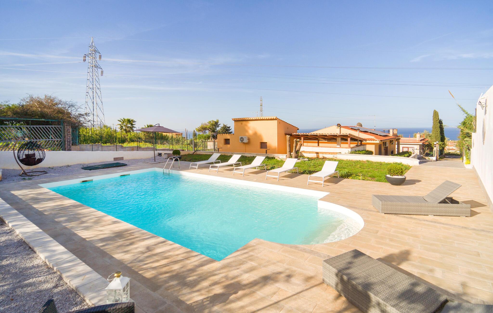 Udforsk Siciliens nordkyst og glæd jer til et ophold i dette smarte hus i Altavilla Milicia. Sammen med den udvidede familie eller et vennepar kan I finde jer godt til rette i dette attraktive hus. Boligstemningen er præget af charmen fra den åbne pejs og det rustikke køkken, men der er også lagt op til mange skønne stunder udendørs. Nyd solskinstimerne på den overdækkede terrasse og snup en tur i poolen, når I trænger til at køle ned eller vil lege vandkamp med børnene. Der står også et sommerkøkken klar, hvor I kan gøre nogle lækre feriemåltider klar.