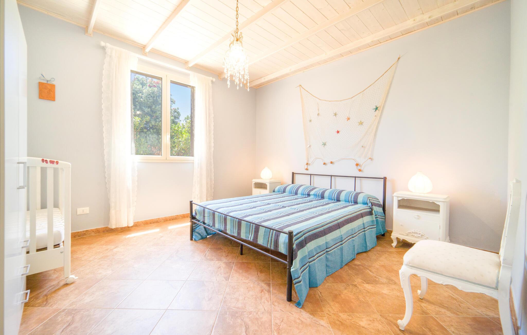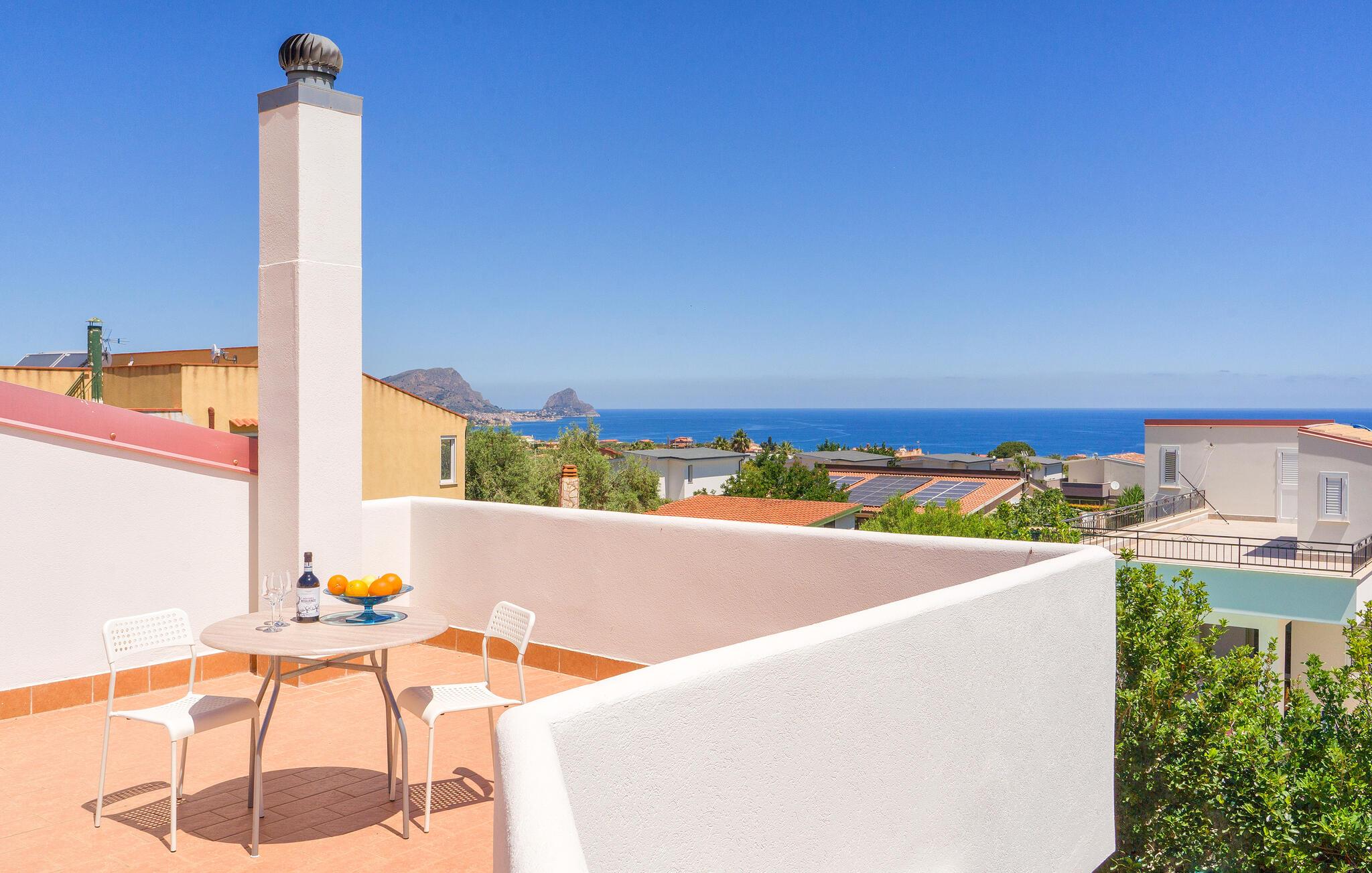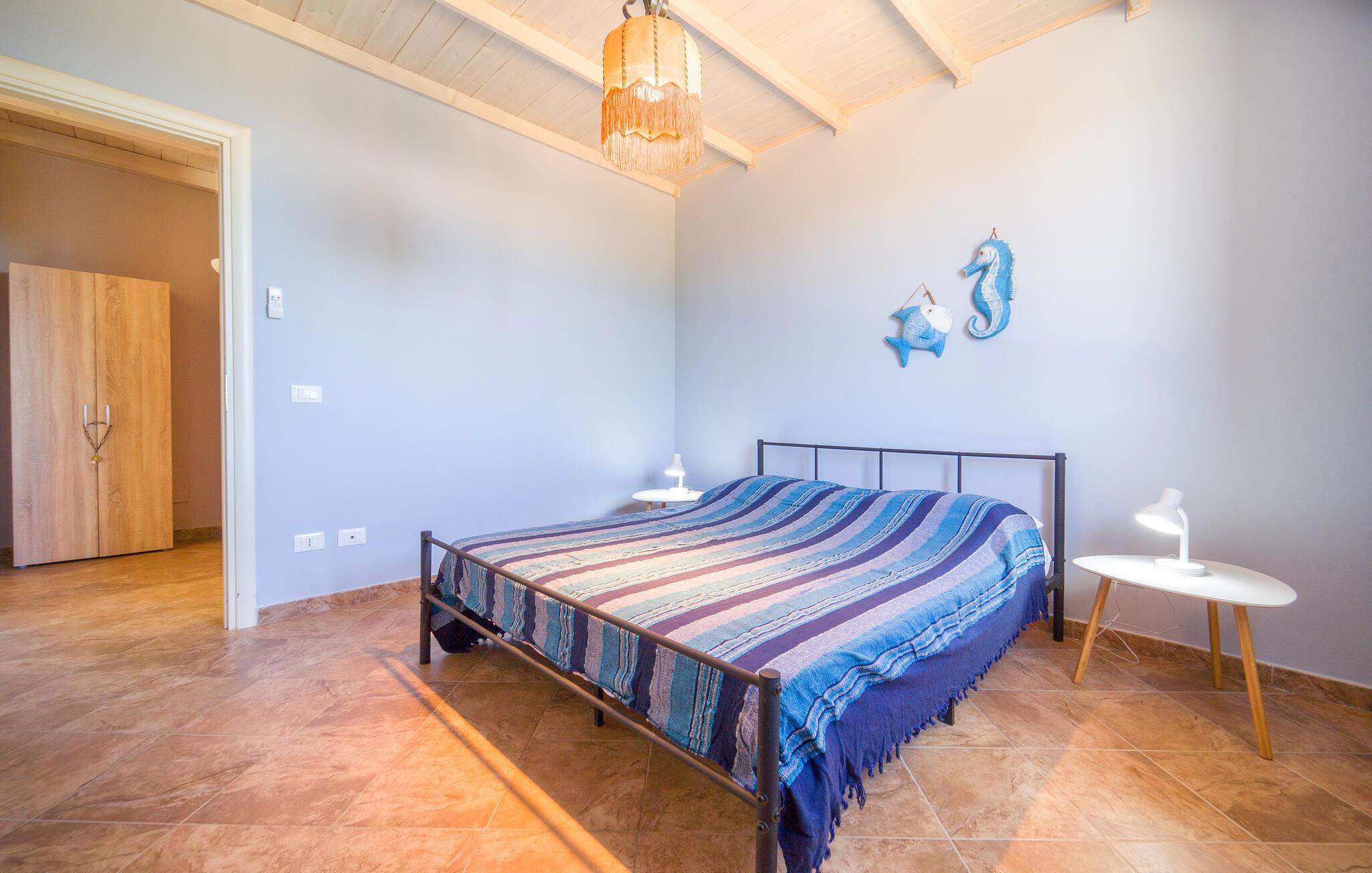 Der er ikke overladt noget til tilfældighederne i dette sicilianske hjem i Altavilla Milicia. Her vil I vil straks bemærke de mange, kærlige detaljer. Det to-etagers feriehus er ideelt til en større gruppe, der ønsker en let adgang til havet og naturen samt en hyggelig og hjemlig bolig med et skønt udeområde. Indvendigt venter jer både lyse og blå farver, der giver en skøn, maritim atmosfære. I skal bare føle jer hjemme her og slappe med madlavning og fællesspisning i en yderst behagelig indretning.