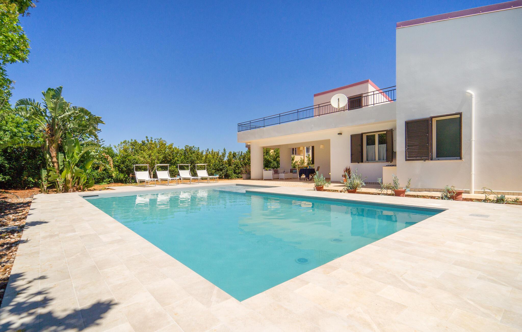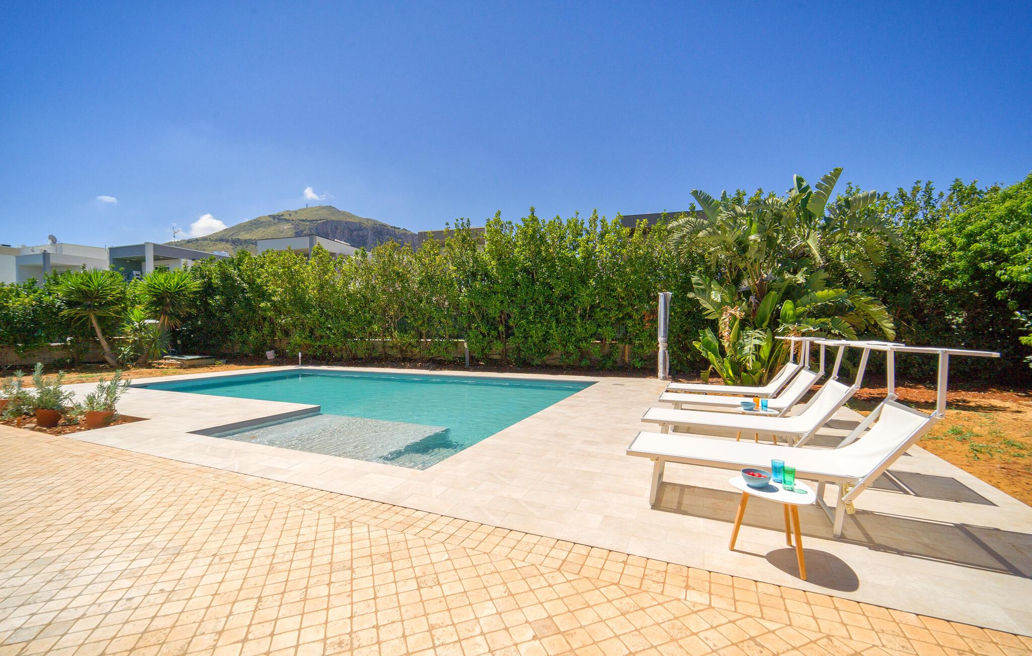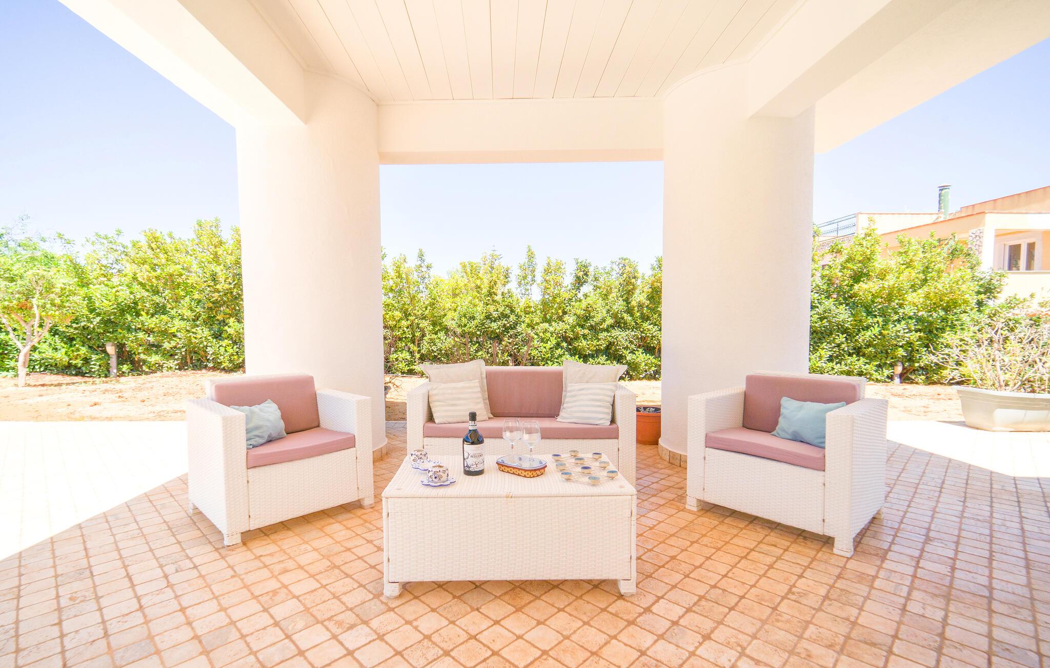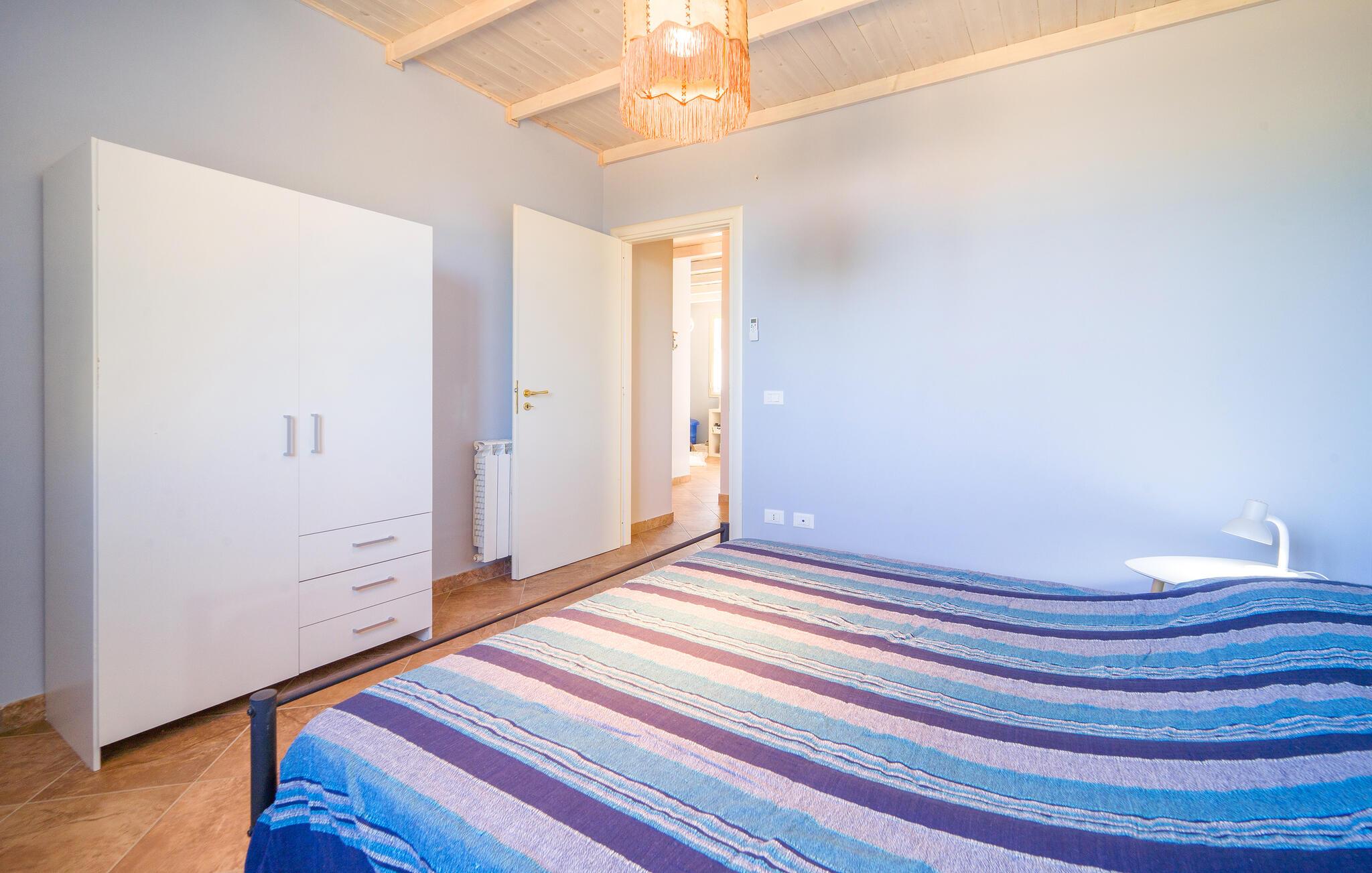 Der er ikke overladt noget til tilfældighederne i dette sicilianske hjem i Altavilla Milicia. Her vil I vil straks bemærke de mange, kærlige detaljer. Det to-etagers feriehus er ideelt til en større gruppe, der ønsker en let adgang til havet og naturen samt en hyggelig og hjemlig bolig med et skønt udeområde. Indvendigt venter jer både lyse og blå farver, der giver en skøn, maritim atmosfære. I skal bare føle jer hjemme her og slappe med madlavning og fællesspisning i en yderst behagelig indretning.