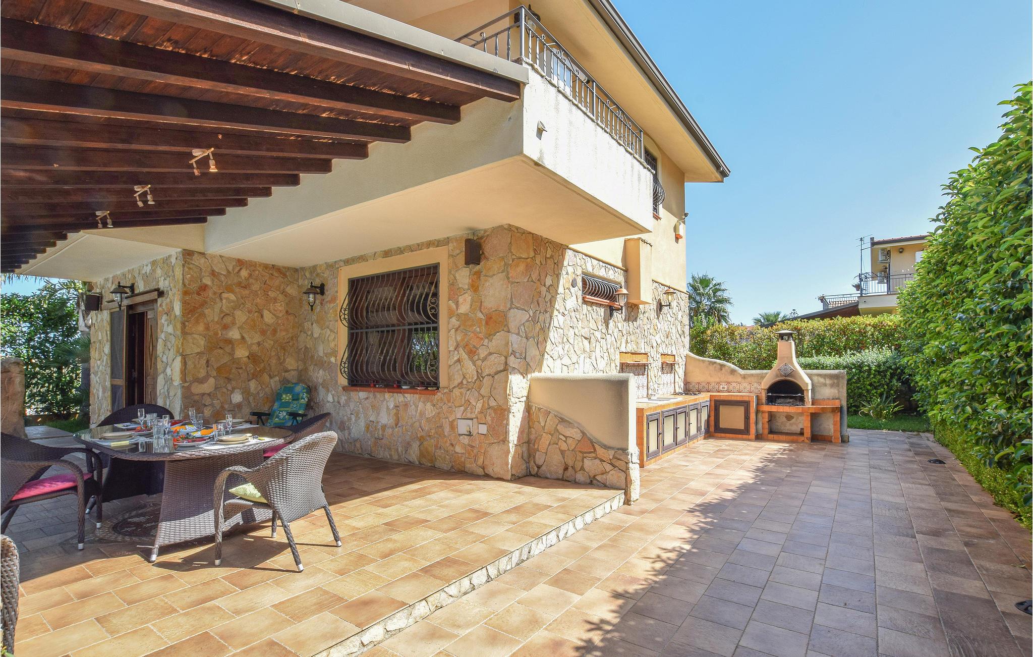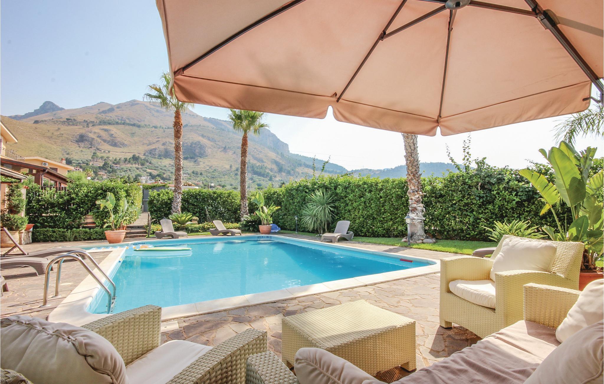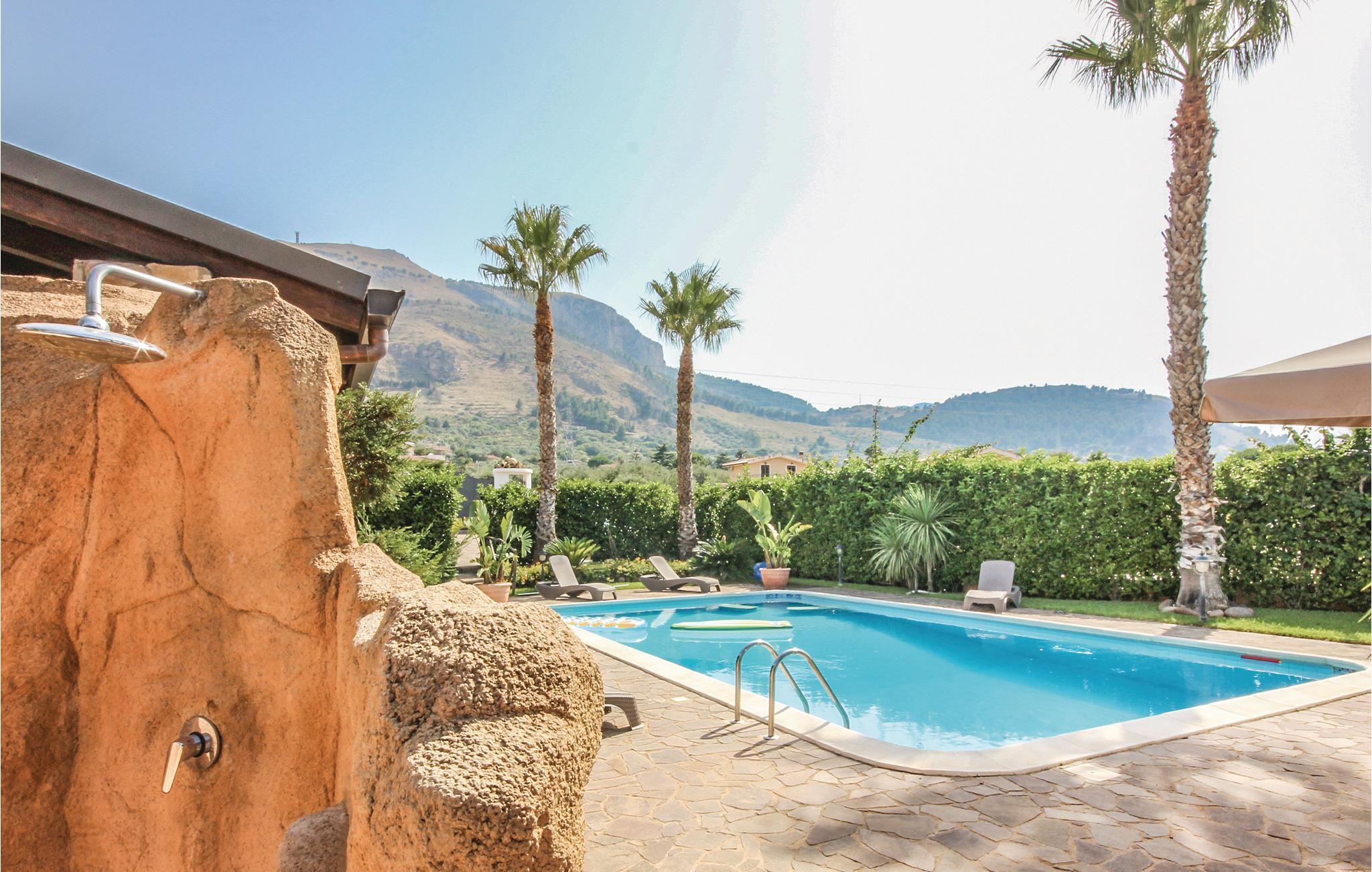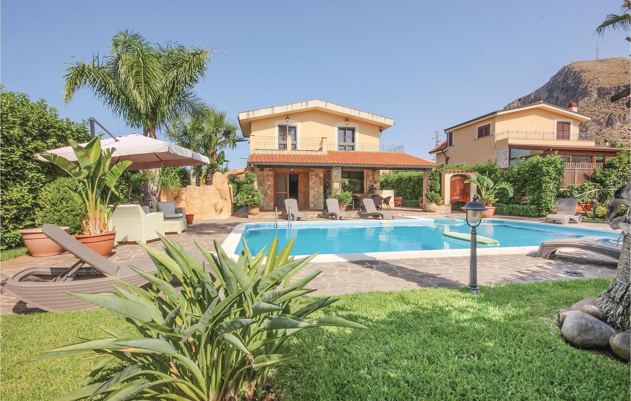 Skønt feriehus med privat pool og store udendørs arealer i et boligområde. I bor 3 km fra Altavilla Milicia, omkring Palermo og ikke langt fra smukke sandstrande. Ideelt hus for familier og gæster, der gerne vil være udendørs. Takket være den bekvemme beliggenhed, kan I nemt nå stranden. Fra terrassen på første sal kan I nyde den delvise udsigt over havet. Ejendommen har store udendørsarealer, en smuk have med palmer og typiske planter, en privat swimmingpool, udendørs bruser, funktionelt udekøkken, grill og overdækket terrasse. Området byder på kendte turistmål og badebyer som Palermo (25 km) med sin enorme kunstneriske arv, Monreale (32 km) med sin smukke katedral og kloster, Cefalù (60 km) med dens fascinerende strande, Capo Zafferano (13 km) med en spektakulær udsigt over Cefalù og helt til Capo Gallo. Huset er fordelt på to niveauer. Trætilbygningen i haven er ikke tilgængelig.