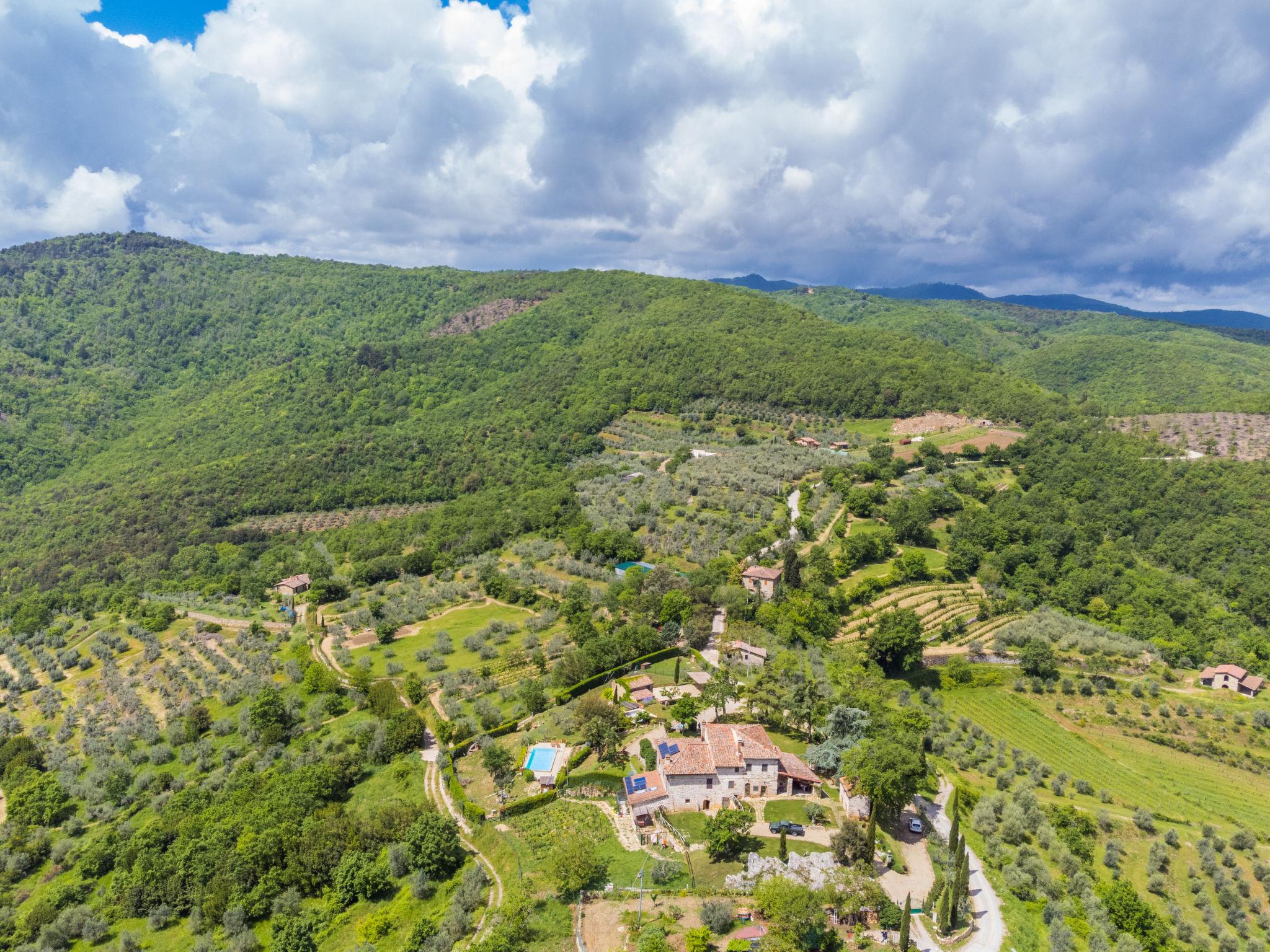 Very beautiful country house "Casa di Life", 450 m a.s.l., from the 16th century, renovated in 2012. In the hamlet Cennina 3.5 km from the centre of Ambra, 6 km from the centre of Bucine, in a sunny, elevated position on top of a hill, 300 m from the edge of the forest, in the countryside. For shared use: property 10'000 m2 (fenced), beautiful, well-kept terraced garden with trees, meadow, orchard, swimming pool (10 x 5 m, depth 150 cm, seasonal availability: 01.May. - 30.Sep.). Outdoor shower, terrace, garden furniture, pool maintenance by the owner/gardener. In the house: washing machine. Motor access (100 m via unmade road). Parking on the premises. E-charging station. Shop 3.5 km, grocery 3.5 km, supermarket 6 km, restaurant 3.5 km, bus stop 3.5 km, railway station "Bucine" 6 km, thermal baths "Rapolano Terme" 23 km. Nearby attractions: Siena 40 km, Arezzo 34 km, Cortona 55 km, Florence 62 km. Hiking paths: Corbezzoli (13 km) 100 m. Please note: car recommended. Baby equipment (included). Residence with electric gates. The owner lives in the same residence. The owner has a dog. All houses/apartments are individually designed/furnished. Outdoor dog pen.